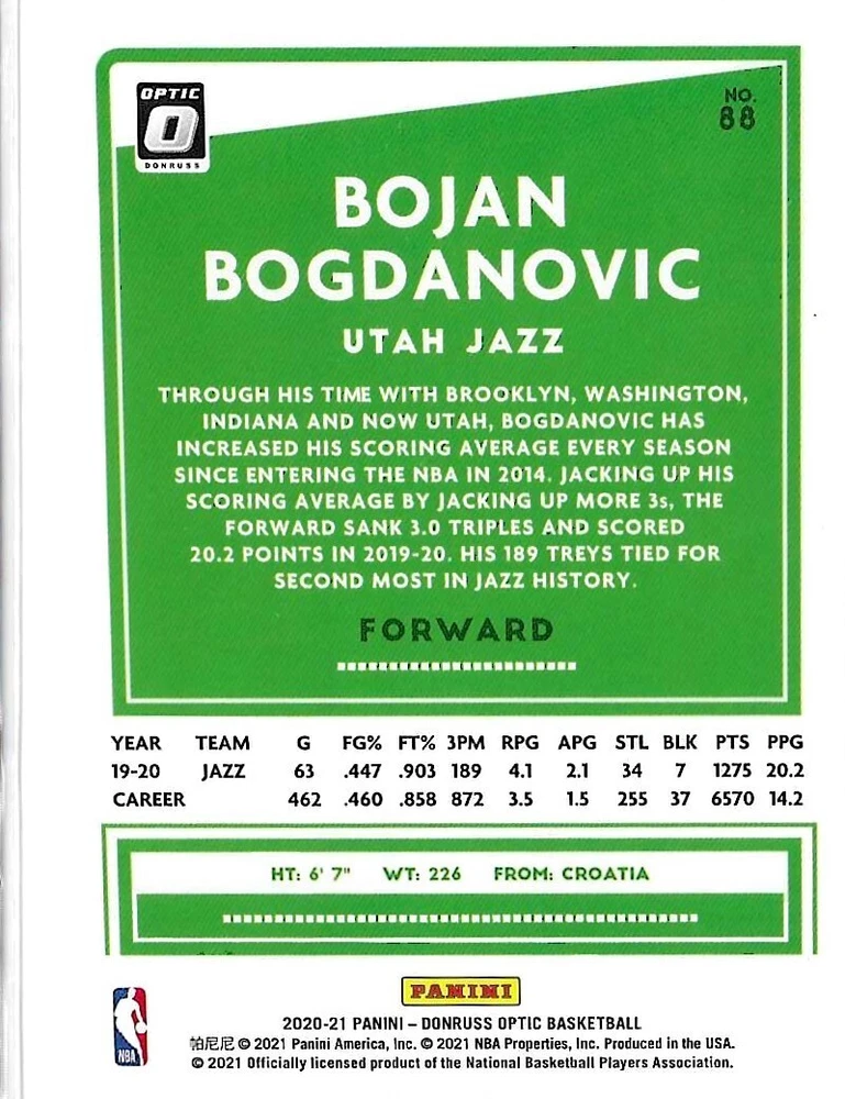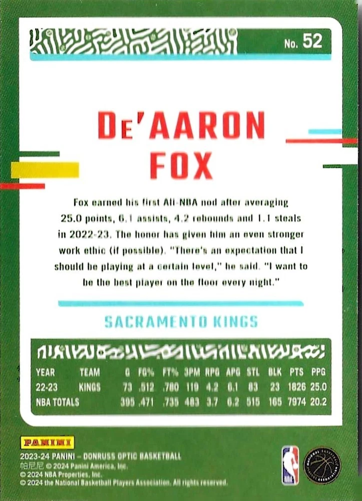 This Panini Donruss Optic trading card lot features a collection of talented basketball players including Bogdan Bogdanovic, De'Aaron Fox, and Zach LaVine. The cards are from the 2023-24 and 2020-21 seasons and are perfect for any fan of the National Basketball Association (NBA). The cards are standard size and manufactured in the United States by Donruss. This lot does not include any autographed cards and is a great addition to any sports trading card collection. The Optic parallel/variety adds an extra layer of uniqueness to this lot.