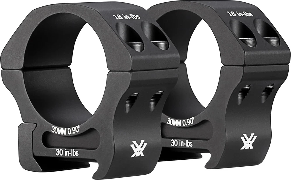 100% Weave Made in the USA These Vortex Pro Series Rings position the center of the riflescope tube at a height of 0.90 inches (22.86 mm) from the base. Sold two rings per package. Made in the USA. The finishing touch to your rifle and optic combination. Pro Series rings combine rock-solid reliability and strength with high quality machining to ensure ultimate accuracy and consistency. Streamlined, lightweight and durable, these rings use four T-25 Torx-style socket cap screws for secure mounting. Fits Weaver and Picatinny Rails | Weight (Per Ring): 44.7 Grams - 1.58 oz Backed by our unlimited, unconditional, lifetime, VIP Warranty. A fully transferable promise to repair or replace your item if it becomes damaged/defective. Does not cover loss, theft, deliberate damage or cosmetic damage that doesn't hinder performance.