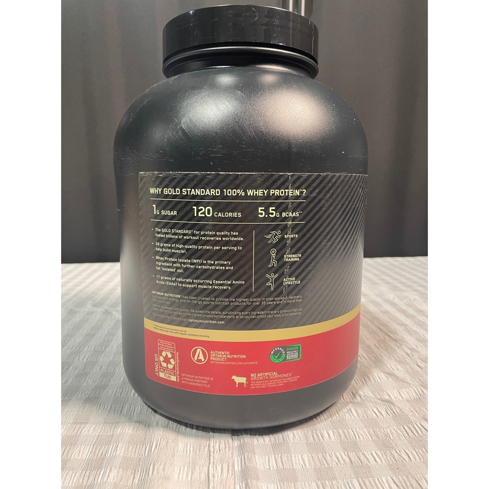 Optimum Nutrition Gold Standard 100% Whey Protein Powder in Vanilla Ice Cream flavor provides high-quality muscle support and recovery. Each serving contains 24 grams of protein, 5.5 grams of naturally occurring BCAAs, and only 1 gram of sugar. This gluten-free formula is designed for maximum mixability and superior drinkability, making it an ideal post-workout supplement or anytime protein boost. Measurements: • Net Weight: 5 lb (2.26 kg) • Servings: 73 • Protein per Serving: 24g