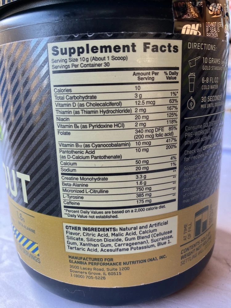 Optimum Nutrition Gold Standard Pre-Workout Powder Supplement 10.58 oz 30 Serv Description Optimum Nutrition Gold Standard Pre-Workout Powder Supplement 10.58 oz 30 Serv. Product Detail Brand : Optimum Nutrition Formulation : Powder Volume : 10.58 oz Type : Supplement Please message me if you have any questions.