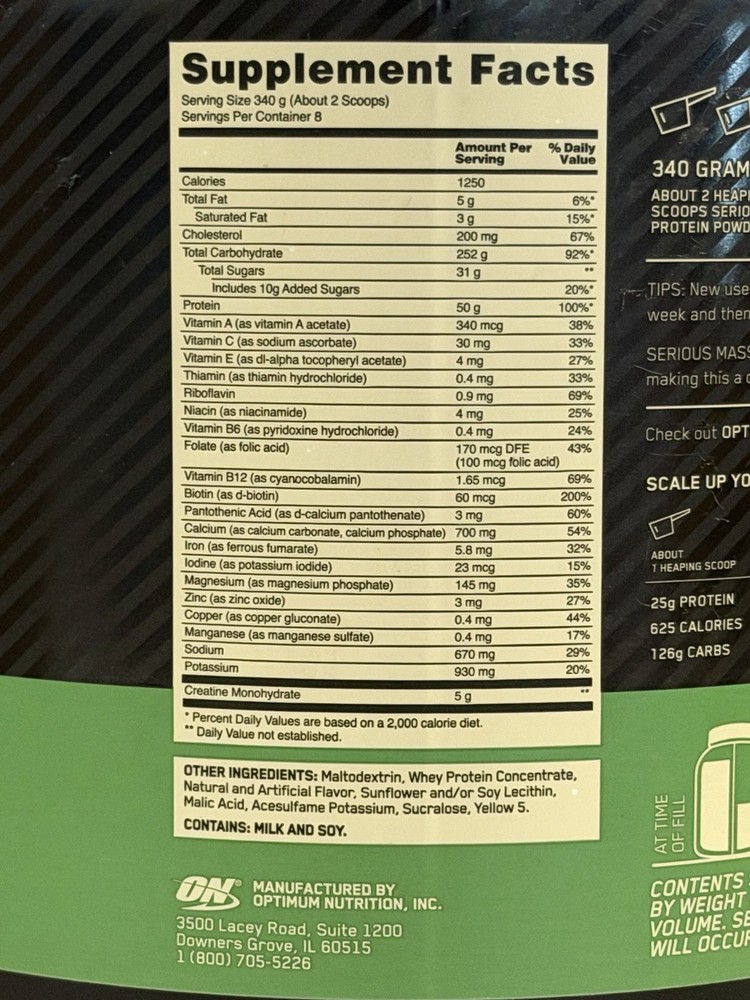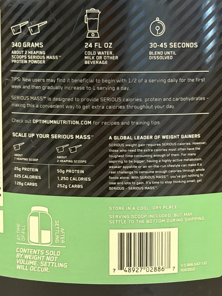 Complete nutrition with 20+ essential vitamins & minerals. Serious mass gain with 1,200 calories per serving. Better muscle recovery with quality amino acid delivery. HIGH CALORIE WEIGHT GAINER: More than 1,200 calories per 2-scoop serving. 50 grams of blended protein per 2-scoop serving. Over 250 grams of carbohydrates per 2-scoop serving. With over 20 vitamins and minerals including Vitamin C and Zinc to provide immune support. MORE VERSATILITY: Using an electric blender, add fresh or frozen fruits, peanut butter, nuts, and other calorie dense foods to boost your weight gain potential.