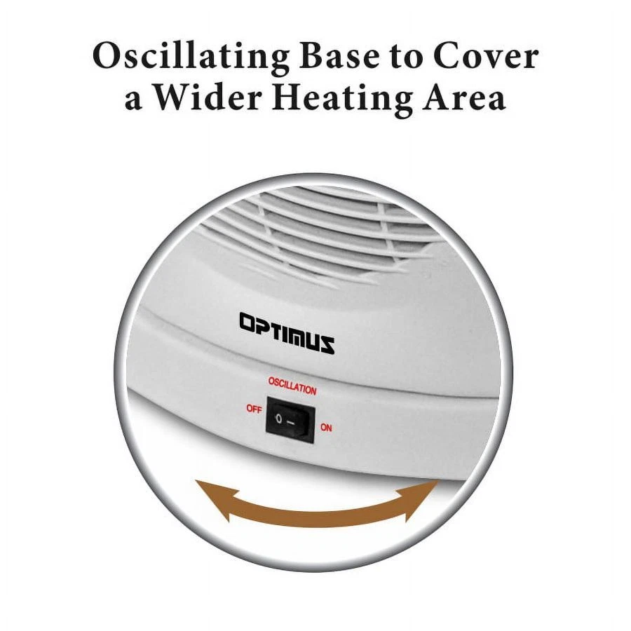 Optimus H-1382 Portable Oscillating Fan Heater with Thermostat2 heat settings: 750W & 1,500W 4-position function switch (off/fan/low/high)Motorized oscillating base rotates a full 70deg Auto thermostat controlInternal heat-limiting thermostatThermostat cutoff safety deviceOverheat protection circuitPower indicator lightTip-over safety switch3-year warrantyPortable Oscillating Fan Heater with Thermostat On Dec 11, 2024 at 03:47:28 PST, seller added the following information: