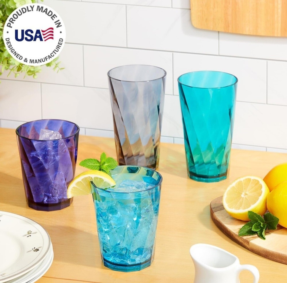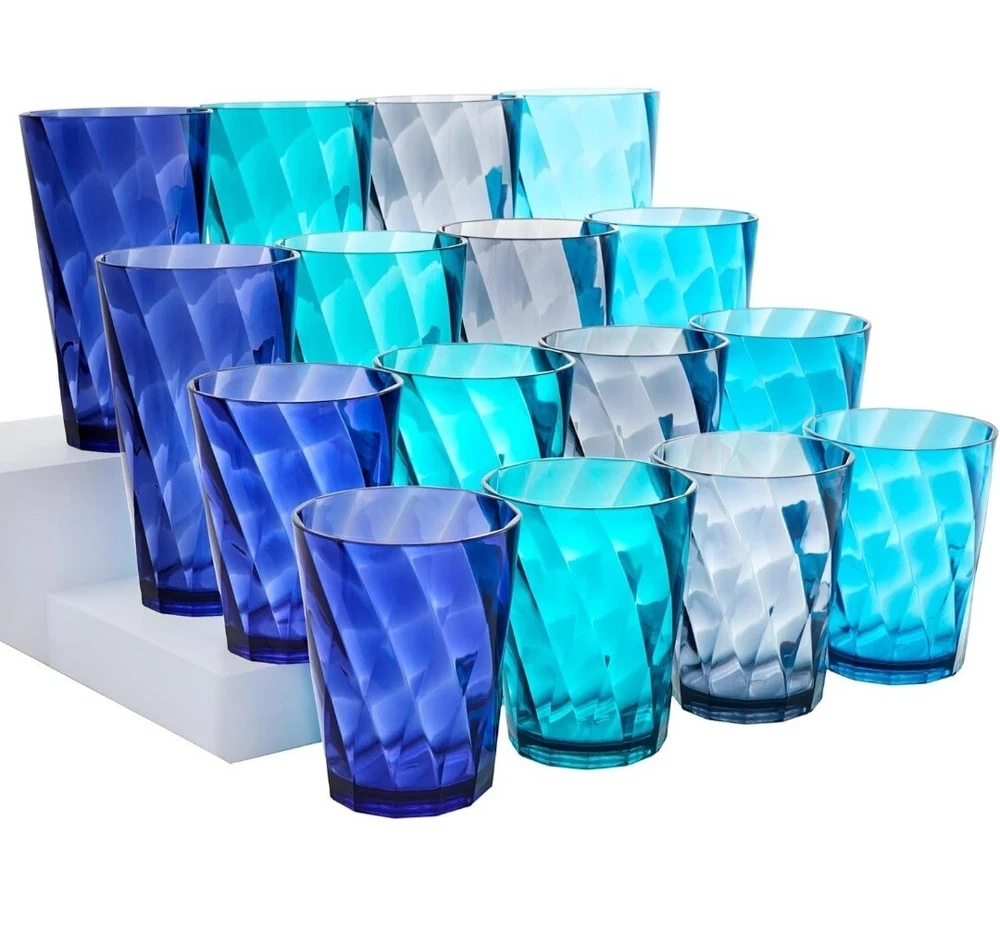 Optix Plastic Reusable Drinking Glasses (Set of 16) 14oz Rocks & 20oz Water Cups in Coastal Colors | BPA-Free Tumblers, Made in USA | Top-Rack Dishwasher Safe Elevate your drinkware collection with our American-made 16-piece set that includes eight 14 ounce glasses and eight 20 ounce glasses. Made from high-quality plastic material that’s free of harmful chemicals, our cups provide a reliable option for you and your party guests. These cups feature 4 beautiful coastal blue and grey colors, a stylish twist pattern, a smooth top edge for easy sipping, and a thick base that provides a glass-like appearance, making them both comfortable and stylish. This design will add an updated look to your kitchen aesthetic. Think outside the house- This Optix plastic glass set is a great addition to any college dorm room, first apartment, rv, and camper. Consider adding these as a wedding registry gift for a new household. Stock your home bar for cocktail hour or prepare for morning breakfast, brunch, and dinner with this selection of highball and rocks tumblers. Entertain outdoors on the patio, pool, or hot tub with these durable and shatterproof pieces. The 14 fl. Oz. Cup (3.5” diameter x 4.5” tall) and 20 fl. Oz. Cup (3.50” diameter x 6” tall) are versatile and suitable for any drinkware need Payment ●Payment must be received within 3 business days of auction closing. ●Please Note: Import duties, taxes and chargers are not included in the item price or shipping charges. These charges are the buyer's responsibility. Shipping ●Items will be shipped within 3 days after the cleared payment. All items will be checked carefully and packages in good condition. ●We will ship to ebay's address only. Please make sure your address on ebay is the same with your shipping address before you pay. ●Shipping and Handling will be determined based upon the ship to address ●If you didn't receive your package, this time schedule, please do not hesitate to contact us. Within 24 hours we will try to update you with the latest tracking details of the shipment. Return and Feedback ●We sincerely hope that you can leave us a positive feedback. If, for any reason you are not satisfied with your purchase, please contact us through "Ask Seller Questions" before leaving neutral or negative feedback ●If you are not satisfied about your received item, please return it within 30 days for a refund. ●We will accept any return and give a full refund (without shipping cost) on any item. The item must be returned to us in original condition and the buyer need to pay return shipping cost