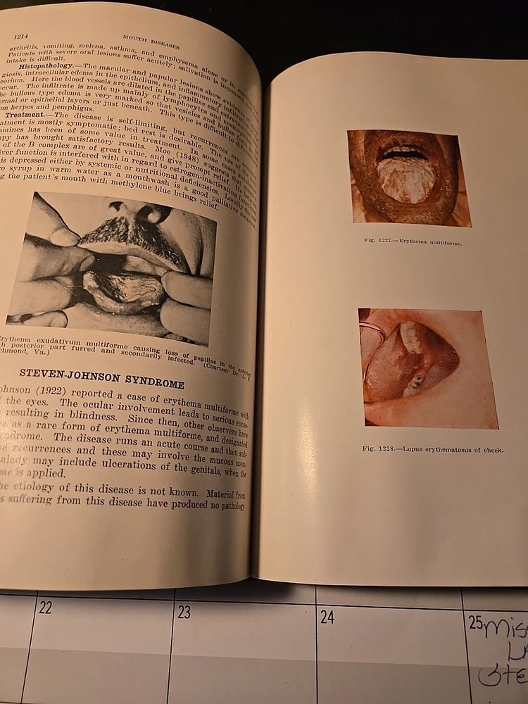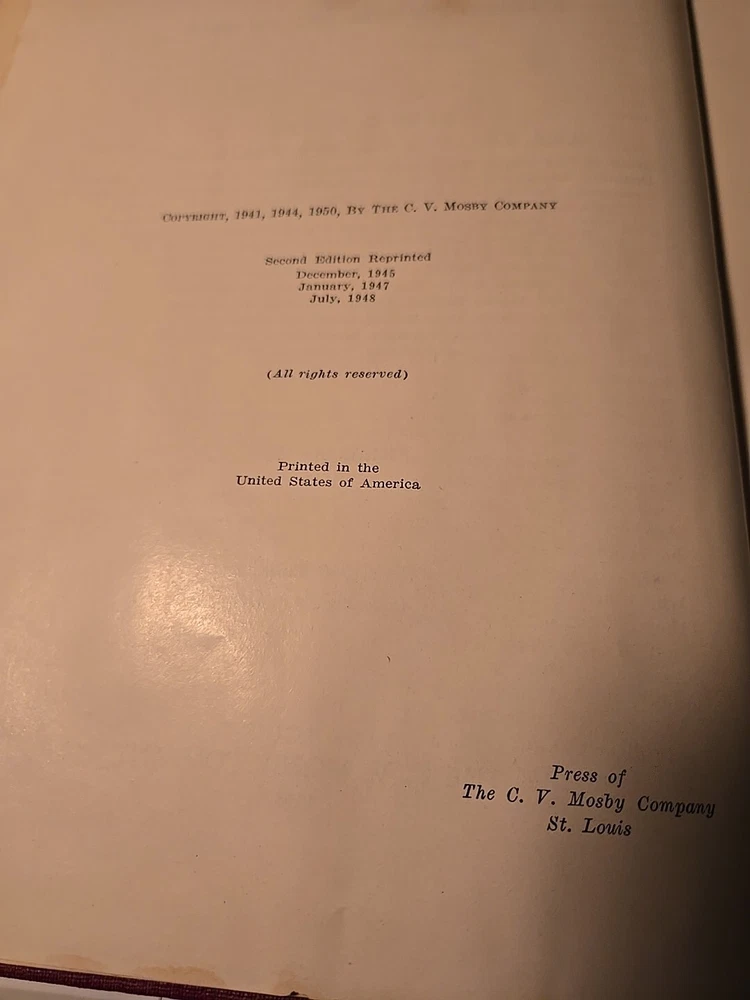 This book is a valuable addition to any collection of antique medical literature. Written by D.M.D., F.D.S., R.C.S., and Kurt H, this book covers the topic of oral pathology and includes histological, roentgenological, and clinical aspects. The book is printed in English by The C.V. Mosby Company in 1950 and has a hardcover binding. The multicolor illustrations and detailed descriptions make this book a must-have for anyone interested in the history of oral medicine.
