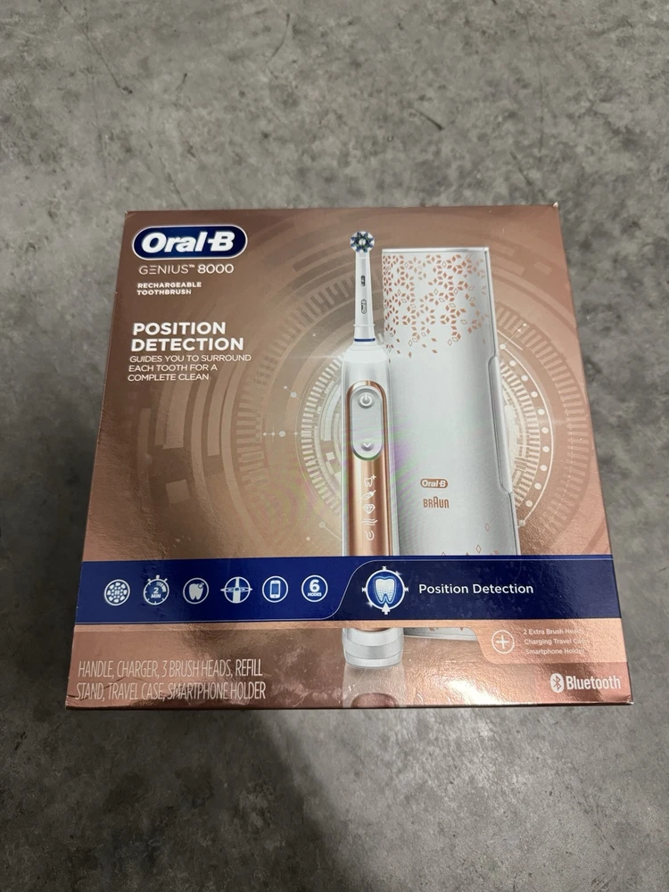 Oral-B 7500 Electric Toothbrush, Rose Gold with 3 Brush Heads and Travel Case. Open box-Never used