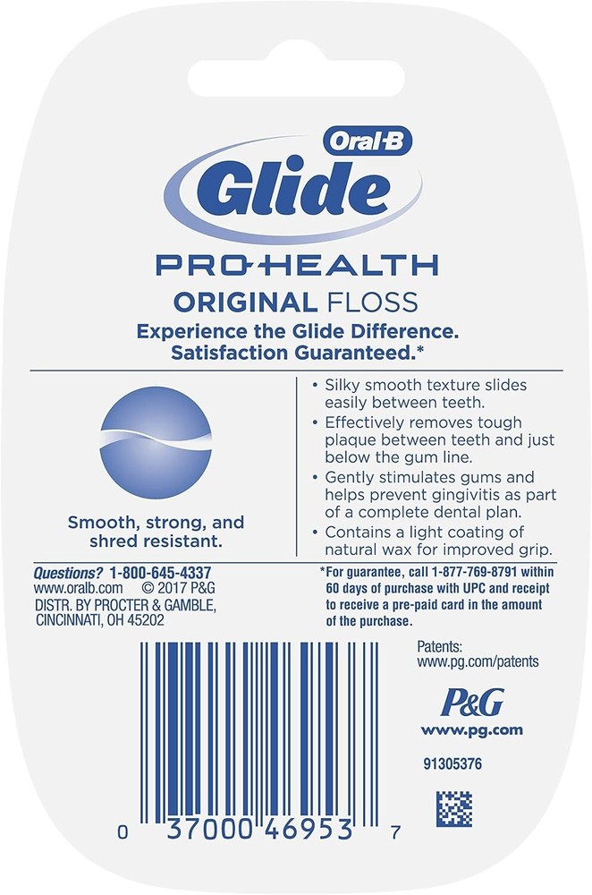 Color: White Country/Region of Manufacture: United States UPC: Dose not apply Department: Unisex Adults gtin13: Dose not apply Type: Dental Floss Features: Light coating of natural wax for improved grip MPN: Dose not apply Model: Dose not apply Brand: Oral-B Product Line: Oral-B Glide Pro-Health