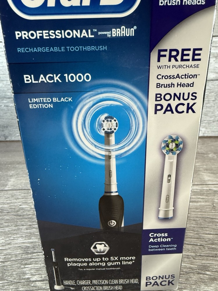 gtin13:Does not applyFeatures:Soft Bristles, RechargeableBrand:Oral-BColor:BlackType:Electric ToothbrushDepartment:Unisex AdultsModel:Pro 1000UPC:Does not applyMotion:Rotating