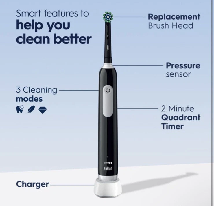 Oral-B Pro 1000 Crossaction Electric Rechargeable Toothbrush - Black