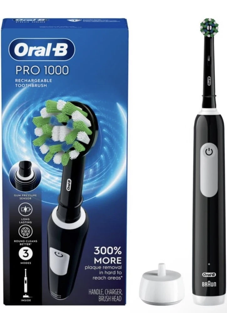 Oral-B Pro 1000 Crossaction Electric Rechargeable Toothbrush - Black.