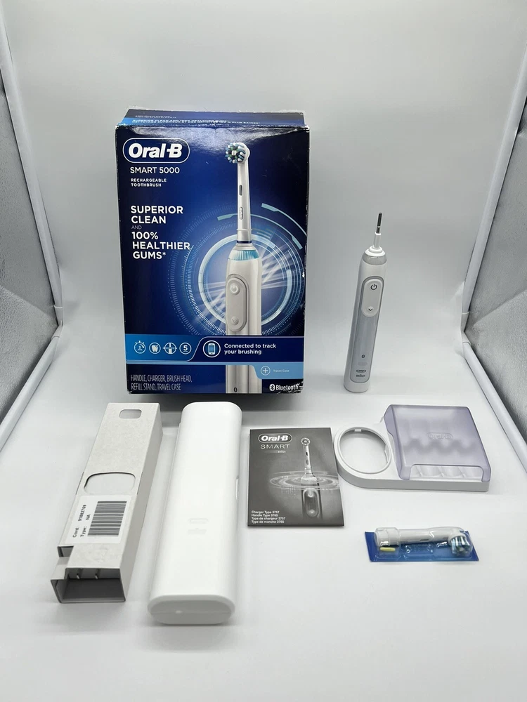 Oral-B Smart 5000 Bluetooth Rechargeable Toothbrush with Travel Case, Open Box. Item: J5
