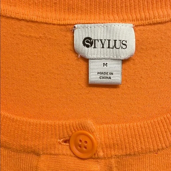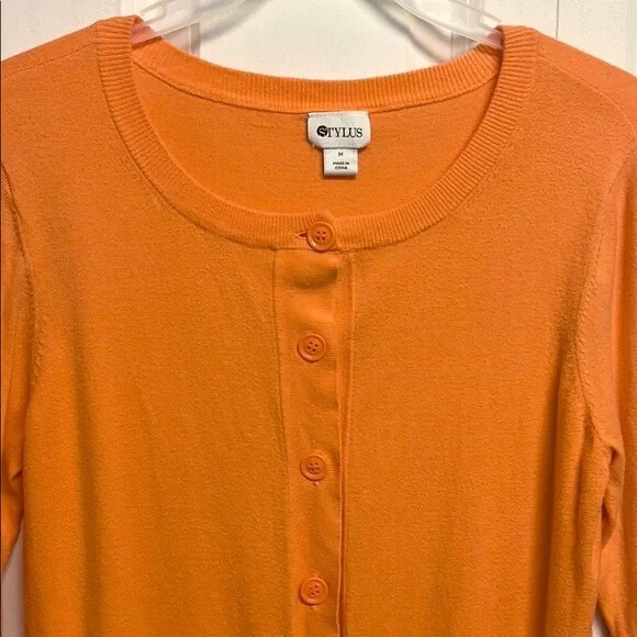 Personalize: No Sleeve Type: Classic/Fitted Sleeve Features: All Seasons, Breathable, Collarless, Easy Care, Lightweight, Preshrunk, Stretch, Unlined Style: Basic Fabric Type: Knit Seller Notes: “Good Pre Owned Condition” Closure: Button Garment Care: Machine Washable Pattern: Solid Color: Orange Season: Fall, Spring, Summer, Winter Fit: Regular Handmade: No Neckline: Round Neck Accents: Button Size Type: Regular Occasion: Casual, Party/Cocktail, Travel, Workwear Brand: Stylus Department: Women Material: Cotton, Nylon Sleeve Length: 3/4 Sleeve Theme: City, Classic, Colorful, Designer, Geek, Hip Hop, Hippie, Hipster, Preppy, Princess, Punk Country/Region of Manufacture: China Size: M Vintage: No Type: Button-Up