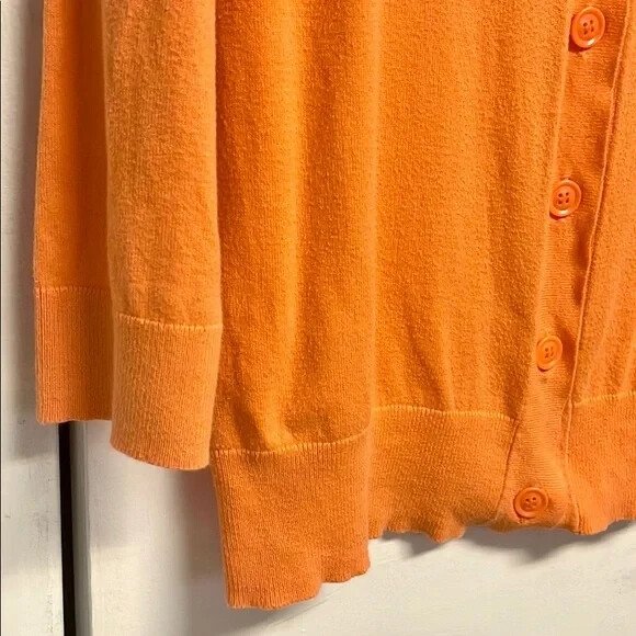 Orange Cotton Blend Knit Button-Up Mid Sleeve Top Size M