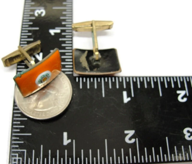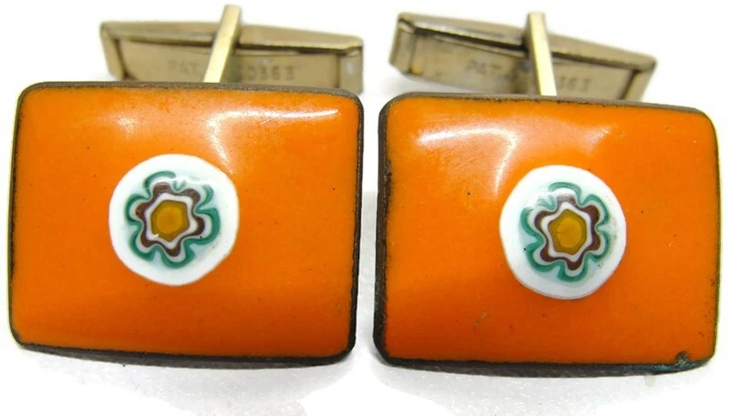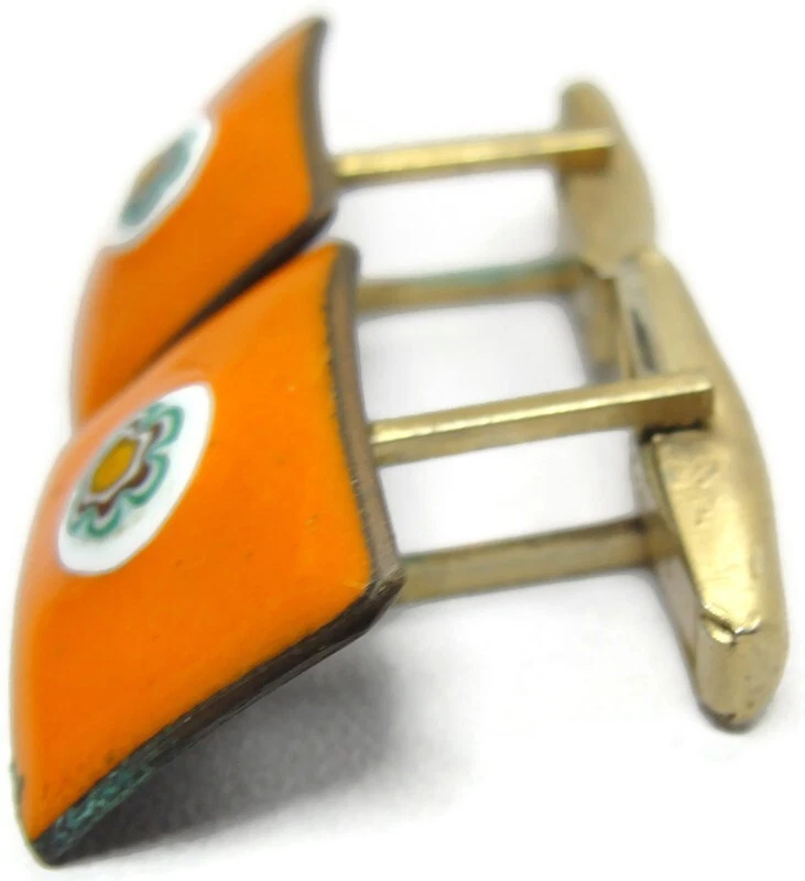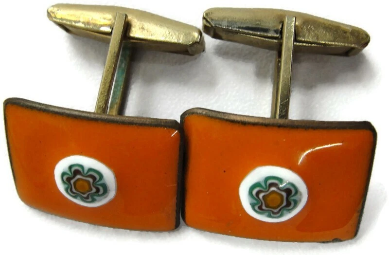 Unbranded's Orange Mosaic Enamel Cufflinks are the perfect vintage accessory for your wedding day. These rectangle cufflinks offer a unique pop of color to any shirt. • Unbranded vintage cufflinks • Orange mosaic enamel design • Rectangle shape • Perfect for weddings • Unique shirt accessory