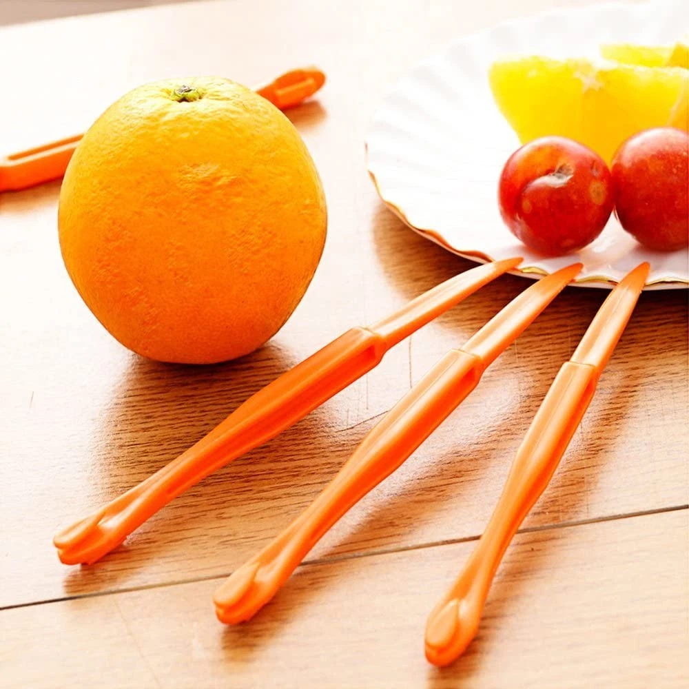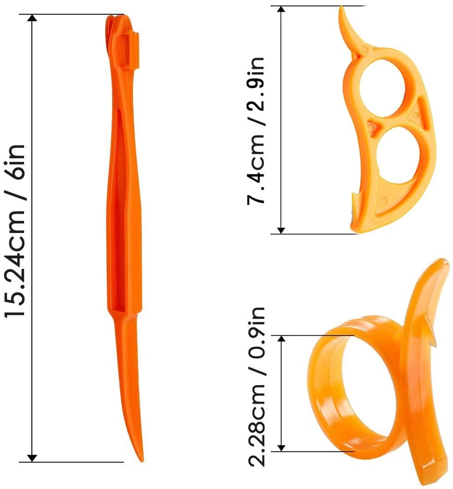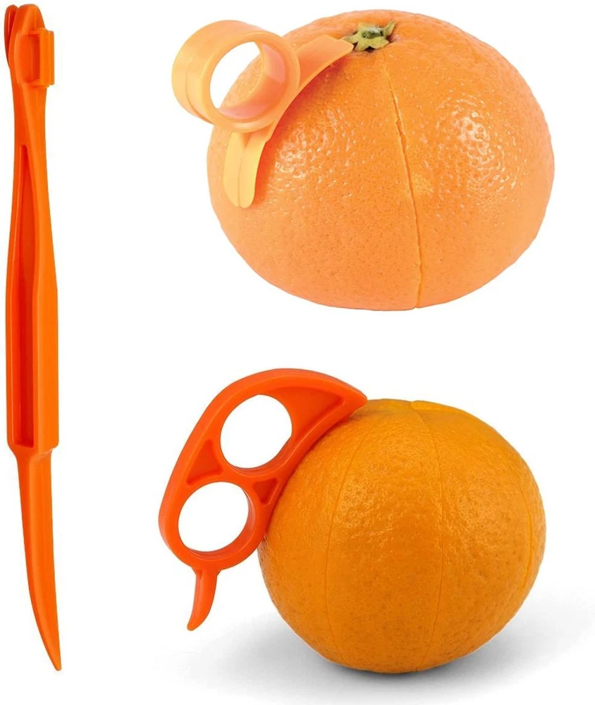 Good For Many Fruits : Orange, citrus, lemon, grapefruit, lime ,Pack of 15. Healthy And Safe: Made of safe plastic material, featuring elaborate orange peeler set. Easy To Use: Just score the orange with the sharp end, then use the pointed end to actually take the peel off, save your nails. Keep Your Hand Dry: These little gadgets helps to keep your fingers and hands from getting dry from the oranges. Set Of 15: 5 strip orange peelers, 5 round citrus peelers.5 mouse peelers.