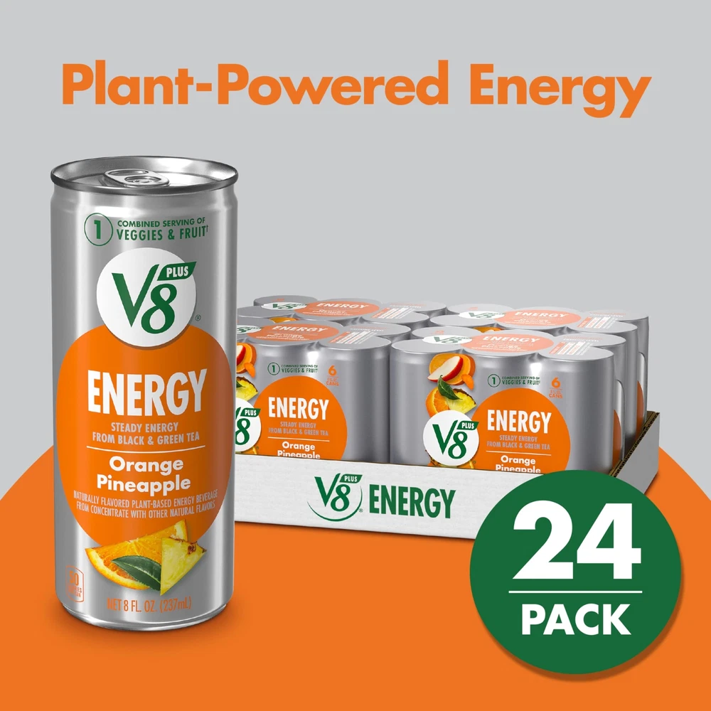 Orange Pineapple Juice Energy Drink, 8 fl oz Can (24 Pack) Twenty-four (24) 8 fl oz cans of Orange Pineapple Juice Energy Drink A orange pineapple flavored fruit and vegetable juice blend infused with natural energy from black and green tea Each can contains 1 combined serving of veggies and fruit along with 80 milligrams of caffeine – as much as leading energy drink brands A healthy energy drink alternative with 50 calories and 12 grams of carbs per can; an excellent source of B Vitamins Non-GMO and gluten-free with no sugar added* and no artificial colors (*Not a low calorie food; see nutrition panel for sugar and calorie content) Experience a delicious plant-powered energy boost with Orange Pineapple Juice Energy Drink. Combining the flavors of tangy orange and tropical pineapple, this concentrated fruit and vegetable juice blend is infused with natural energy from black and green tea. Each 8 fl oz can contains 1 combined serving of veggies and fruit along with 80 milligrams of caffeine – as much as leading energy drink brands. A healthy energy drink alternative, pineapple orange juice contains 50 calories and 12 grams of carbs per can. It’s also an excellent source of B Vitamins. caffeinated juice drinks are non-GMO and gluten-free with no sugar added* and no artificial colors. Enjoy as a coffee substitute in the morning, in place of soda during the afternoon, or as a mocktail or cocktail mixer in the evening. It’s great anytime you need a plant based boost of natural caffeine. (*Not a low calorie food; see nutrition panel for sugar and calorie content) Shipping We offer FREE shipping on all orders! We ship within Three business days of payment, usually sooner. We use a selection of shipping services such as UPS, FedEx, USPS etc. We only ship to the lower 48 states, no APO/FPO addresses or PO Boxes allowed. Local pickups and combined shipping options are not provided at this time. Return You can return a product for up to 30 days from the date you purchased it. Any product you return must be in the same condition you received it and in the original packaging. Please keep the receipt. Payment We accept payment by any of the following methods: PayPal Please pay as soon as possible after winning an auction, as that will allow us to post your item to you sooner! Feedback Customer satisfaction is very important to us. If you have any problem with your order, please contact us and we will do our best to make you satisfied. Contact Us If you have any queries, please contact us via ebay. We usually respond within 24 hours on weekdays. Please visit our eBay store to check out other items for sale! Thank you for shopping at our store.