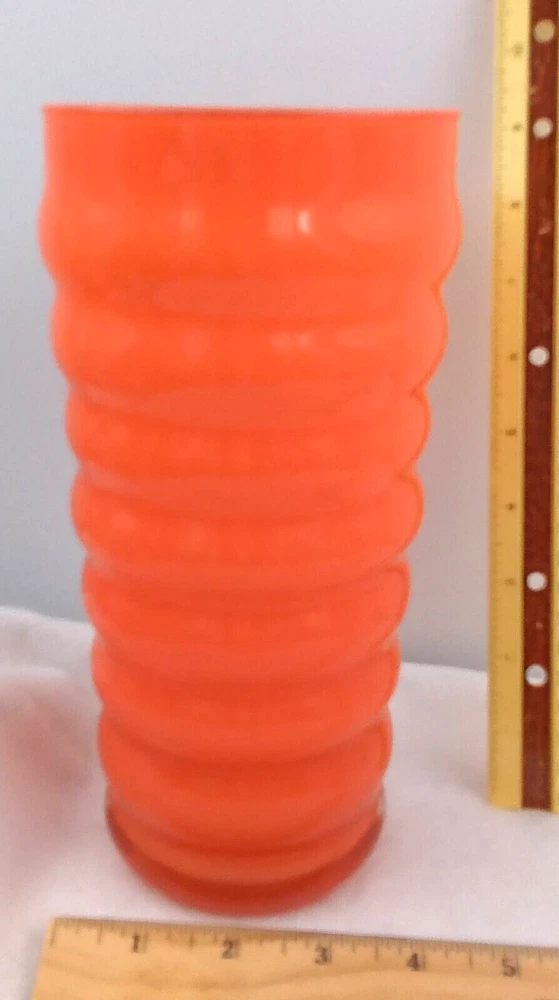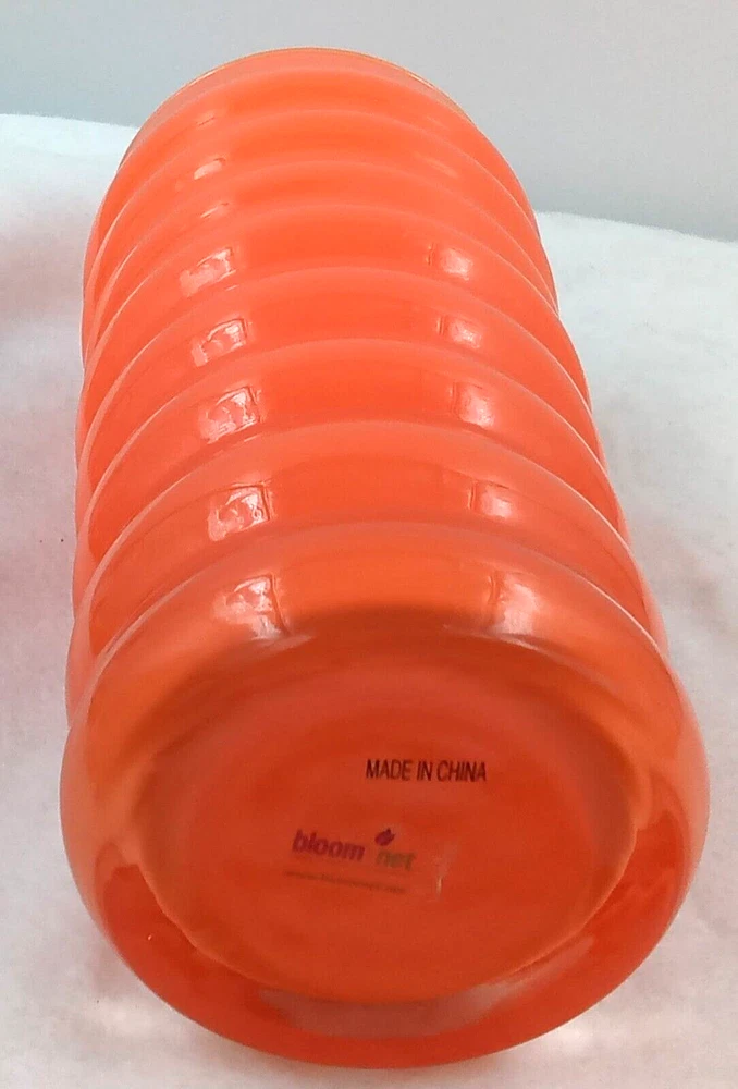Finish: Glossy Style: Art Deco Personalize: No Additional Parts Required: No Pattern: Floral Care Instructions: Easy Care Material: Glass Features: Decorative Room: Any Room gtin13: Does not apply Customized: No Theme: Flowers Item Height: 9 in Mounting: Free Standing Brand: BloomNet Seller Notes: “Beautiful Orange Color! Very Pretty! Pre-owned! Vintage!” Country/Region of Manufacture: China UPC: Does not apply Vintage: Yes Shape: Round Color: Orange Department: Adults Type: Flower Vase