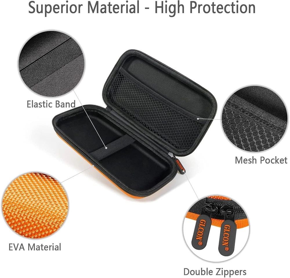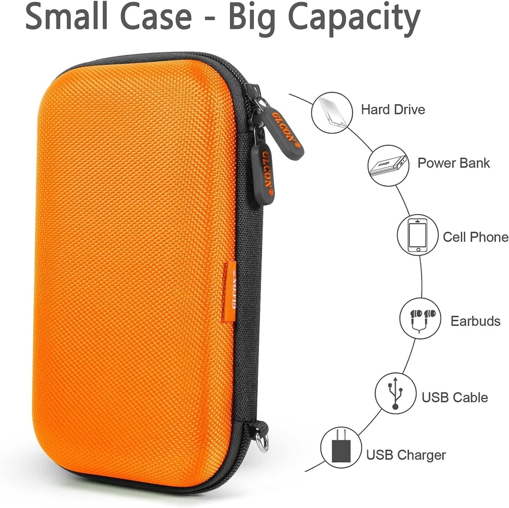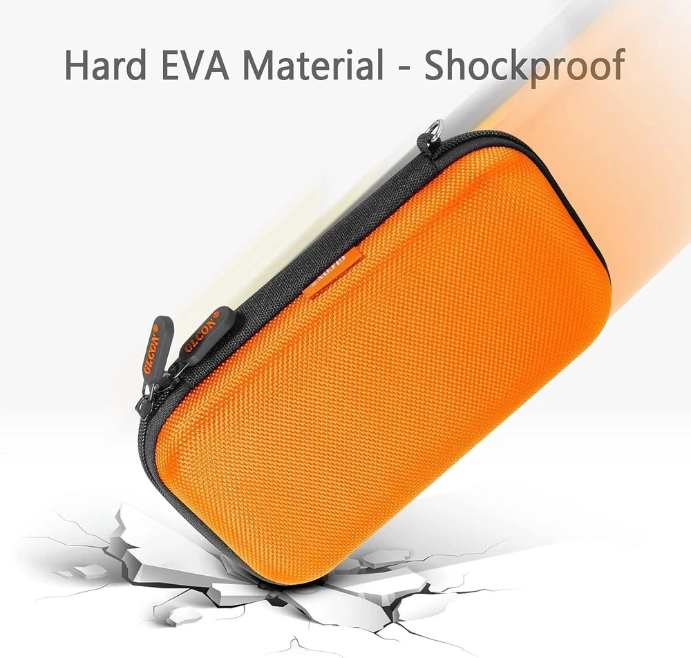 Orange Shockproof Hard EVA Carrying Case Travel Pouch for External Hard Drive, P Description : Wide Compatibility - This external hdd case is perfect for carrying Western Digital WD My Passport USB 3.0, Seagate Expansion Backup, Toshiba 500G 1TB 2TB 3TB 4TB external hard drive, Anker Jackery RAVPower power banks, charging cable, cell phone, u disk, coin, etc High Protection - This external hard drive case is made of eva material and equipped with two ribber zippers, it’s shockproof and long-lasting Compact Size - Exterior size: 7.2 x 3.9 x 1.9 inches; Interior size: 6.9 x 3.7 x 1.4 inches. This small travel case is widely used for electronic gadgets organizer, like cell phone, bluetooth earpiece, hard disk, usb cable, memory card Easy Carrying - This portable carrying case is small and lightweight, which could allow this hard case to easily fit into any backpack or briefcase Fashionable Design - The shockproof eva case build-in a mesh pocket and a elastic strap to keep your HDD in place. No worry about a mass of gadgets