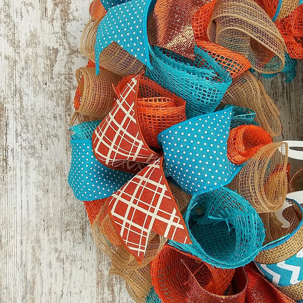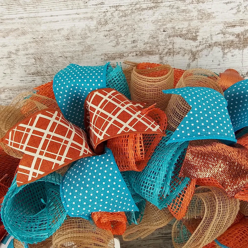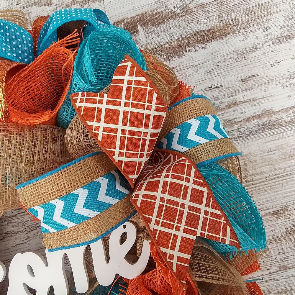 This inviting wreath will make a wonderful addition to your indoor or outdoor home décor. Use it for your own decor, or a gift for someone special. Thank you so much for visiting my shop and for considering pieces that allow my passion to make your home even more beautiful. Please message me with any questions before purchasing. This wreath measures approximately 24 inches round and approximately 5" deep. This ready to ship wreath is made with orange, turquoise and white mesh and accented with several different colors of ribbons to showcase the orange welcome sign in the center. Want something more custom or have questions? Send me a message...the backbone of my business is custom creations! Purchase with confidence in a seller with excellent reviews and over 15,000 sales between all selling venues. Indoor and outdoor pieces but my wreaths do appreciate a little shelter from the elements to stay in pristine condition.