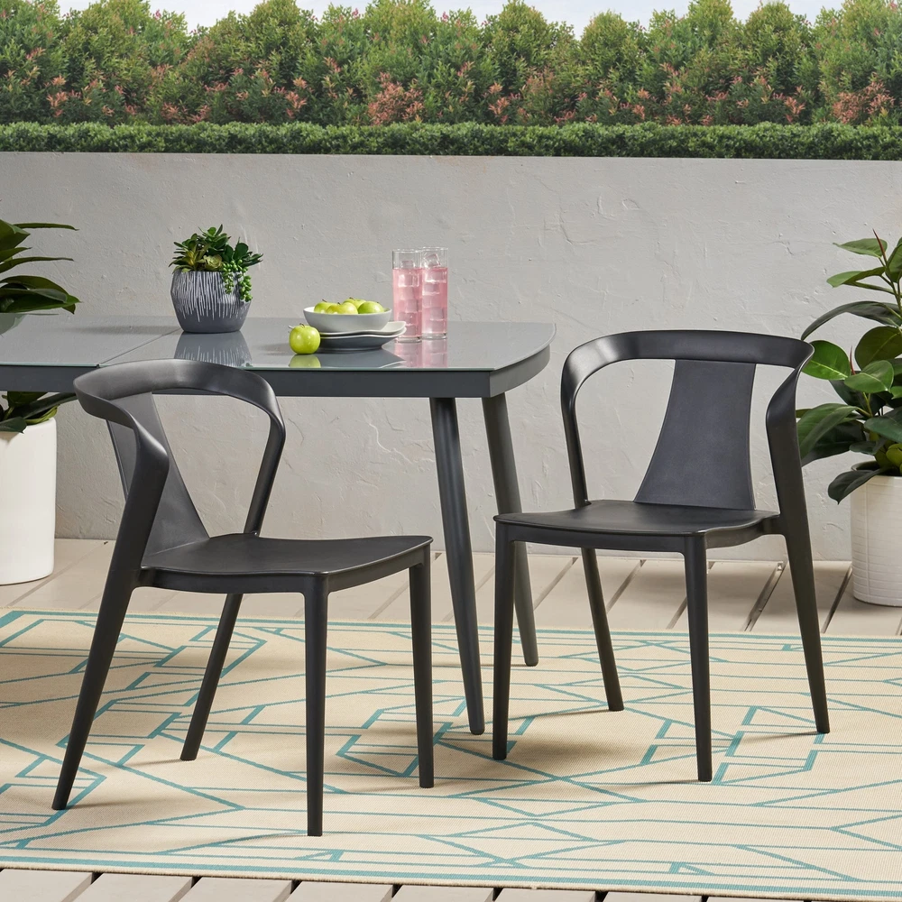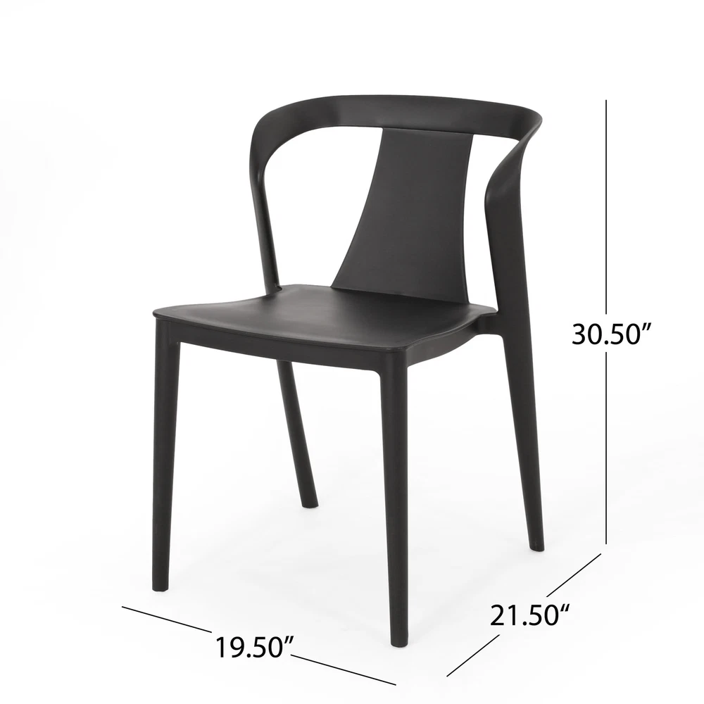 Featuring weather-resistant properties and a unique plastic blend material, this outdoor chair set provides astonishingly stable frames that will last you for years to come. This minimalistic design balances clean-cut lines and elegant curves to create an impressive look of sturdy structure and stylish comfort. Finished with a curved backrest, our chair set is sure to transform any dining set or backyard space into a refined masterpiece.Features: Includes 2 dining chairs Made with polypropylene resin Available in white or black Hand-crafted detailing No assembly requiredDimensions: Overall: 21.50 inches deep x 19.50 inches wide x 30.50 inches high Seat: 17 inches deep x 17.20 inches wide x 18 inches high Free Shipping Over $49.99* Details Orchid Outdoor Stacking Dining Chair (Set of 2) by Christopher Knight Home - Product Description: Featuring weather-resistant properties and a unique plastic blend material, this outdoor chair set provides astonishingly stable frames that will last you for years to come. This minimalistic design balances clean-cut lines and elegant curves to create an impressive look of sturdy structure and stylish comfort. Finished with a curved backrest, our chair set is sure to transform any dining set or backyard space into a refined masterpiece. Features: Includes 2 dining chairs Made with polypropylene resin Available in white or black Hand-crafted detailing No assembly required Dimensions: Overall21.50 inches deep x 19.50 inches wide x 30.50 inches high Seat17 inches deep x 17.20 inches wide x 18 inches high