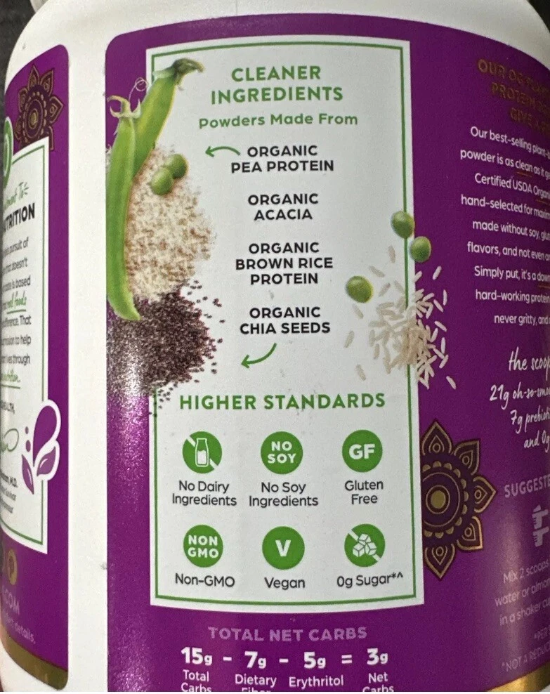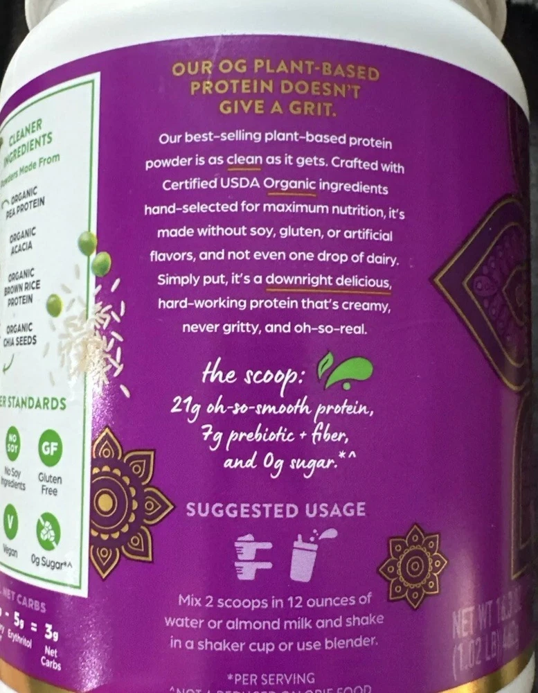 Orgain Organic Protein Powder- Chai Latte 16.3oz. 21g plant protein. 7g prebiotic and fiber. Limited edition flavor. Clean ingredients Best by date in photos