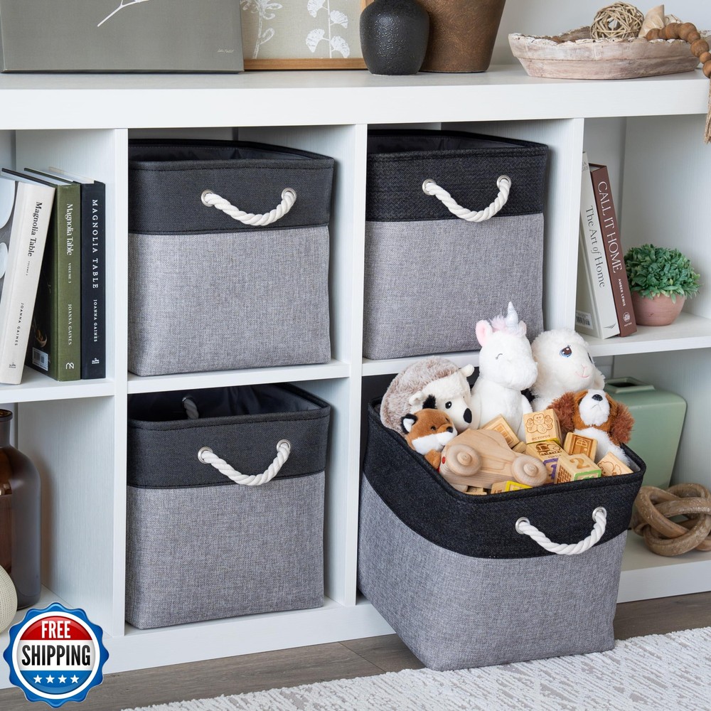 These bins are total game-changers! Super sturdy, easy to fold and store, and the rope handles make them a breeze to carry. Perfect for taming toy chaos and organizing closets. Love the modern gray/black combo too!