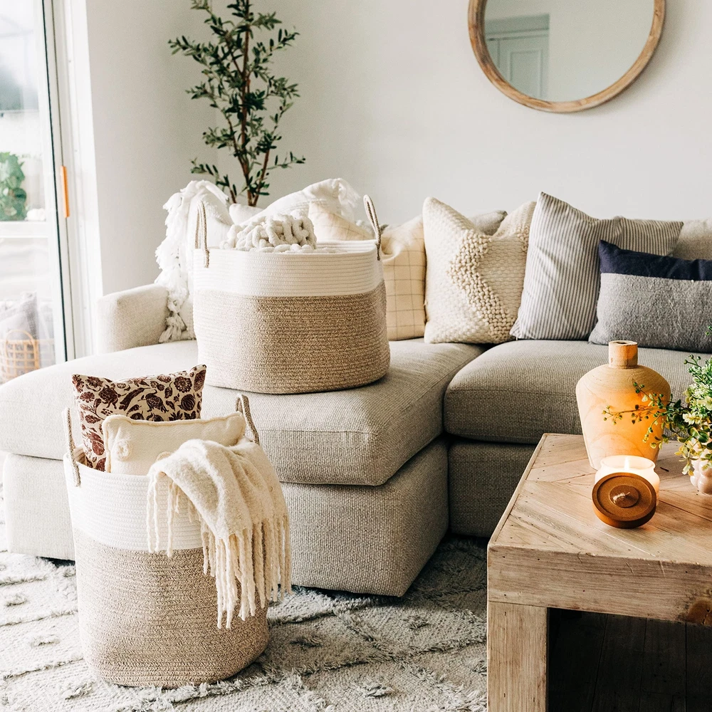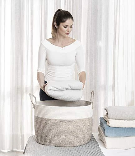 OrganiHaus Brown Towel Basket for Bathroom 20x13, Large Toy Basket for Storage for Kids, Large Blanket Basket for Living Room, Round Laundry Basket & Blanket Bin, Large Woven Basket for Storage Lovely Plain Colors that have a pure, natural vibe and beautiful look. They go well in any room in your home. The Off White and Gray are big favorites for our customers, and we're now introducing the Black Basket. Choose from two popular sizes. Many people buy both to fully outfit their living room, laundry, and bedroom decor. Choose from Tall or Wide - these make a natural decorative way to store and organize clothing, pillows, blankets, kids toys, and a variety of supplies and nursery or baby accessories. We like how one is quite compact for small spaces while the other spreads out to accommodate bulkier items. Natural handmade cotton rope has no plastics, harsh chemicals, toxins, or harmful additives. It is the natural renewable material you feel good about having in your farmhouse or boho home. Safe for kids and pets. Big easy-carry handles make this round throw basket hamper the most portable. Compare to others made with wicker or wire with small handles that can hurt your hands. Durable and Long Lasting to give you a great laundry storage basket that will last for years of continuous use. Rope will not separate, fray, or fall apart. We use highest grade materials and construction. You can feel and see the impressive difference the moment you receive it. Many people are stocking up with 2 or 3 of these quality extra-large baskets to organize kids' rooms, yoga mat, and crafts supplies, and store a blanket, pillow, shoe, or toy. It makes a thoughtful birthday gift, holiday gift, wedding present, or housewarming gift great for anyone who appreciates a premium hand woven rope basket! Shipping We offer FREE shipping on all orders! We use a selection of shipping services such as UPS, FedEx, USPS etc. We only ship to the lower 48 states, no APO/FPO addresses or PO Boxes allowed. Local pickups and combined shipping options are not provided at this time. Return You can return a product for up to 30 days from the date you purchased it. Any product you return must be in the same condition you received it and in the original packaging. Please keep the receipt. Payment We accept payment by any of the following methods: PayPal Please pay as soon as possible after winning an auction, as that will allow us to post your item to you sooner! Feedback Customer satisfaction is very important to us. If you have any problem with your order, please contact us and we will do our best to make you satisfied. Contact Us If you have any queries, please contact us via ebay. We usually respond within 24 hours on weekdays. Please visit our eBay store to check out other items for sale! Thank you for shopping at our store.