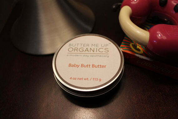 This all-natural butt butter is not only extremely soothing it's also very nutritive and healing for baby's sensitive skin. Great for diaper rash, cradle cap and everyday use, the butt butter provides and wonderful layer of moisture and protection for baby's delicate bottom. Works with cloth diapers and is the only product I'll use on my son. My son is five and my daughter is three and neither ever had any diaper rash at all. Why's it so good you ask? It has a combination of proven all natural ingredients in a butter, which means, no water. It's potent and pure. It contains Organic Shea & Mango butter which are both known for their soothing and healing abilities; great for skin rashes, diaper rashes and infections these butters are miracle workers. This butter also contains organic Coconut Oil, which is an anti-fungal, antibacterial, and antiviral which not only heals diaper rash, but keeps it away. Additionally, there is skin nourishing organic Avocado Oil which softens skin and retains natural collagen as well as organic Olive Oil which is an excellent moisturizer for baby's bottom. The Vitamin E oil heals sores and rashes as well as moisturizes. This butter also contains my favorite ingredient- Calendula Oil which is revered for its potent healing benefits. Beeswax helps to soothe and protect baby's sensitive skin as well as Olive Oil, which is an excellent moisturizer for baby's bottom. There's a bit of Jojoba oil to balance the skin's natural sebum. That's it, all natural and wonderfully soothing and healing. This product can also be used for cradle cap or rashes. It's a top and bottom butter! Great for boo boos and eczema as well. Cloth diaper friendly! 4oz. tin. Ingredients: Shea Butter*, Mango Butter, Coconut Oil*, Avocado Oil*, Jojoba Oil, Beeswax, Olive Oil*, Vitamin E, Lavender Essential Oil*, Calendula*. *Indicates Certified Organic Shop Info: We believe that your skin is just as vital as any other organ in your body. Here at Butter Me Up Organics we like to say, "Don't put anything on your body that you wouldn't put in it." So, on that note, all of our products are completely edible. They may not be so tasty, however, but everything we use are non- toxic premium ingredients. Can you say that about the products you're currently using? Other Info: Organic Completely cruelty free No sulfates, phthalates or parabens…ever No synthetic dyes or fragrances Completely all natural and safe Zero waste company Packaging upcycled when possible, Everything is made with love <3 ***This product has not been approved by the FDA though the individual ingredients have. This is not intended to replace the advice of a physician nor is it intended to treat, cure or prevent any disease.