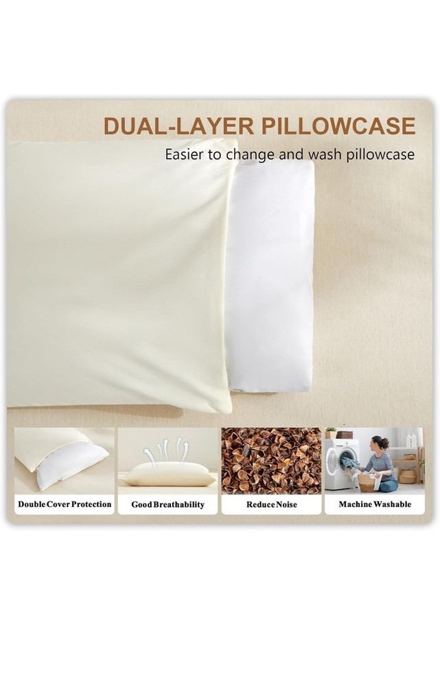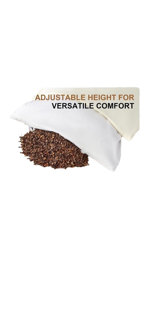 Organic Buckwheat Pillow for Sleeping with Dual-Layer Pillowcase and Extra Tartary Buckwheat Hulls, Adjust Height and Firmness, Neck Support Pillow for Back and Side Sleepers 14"x20