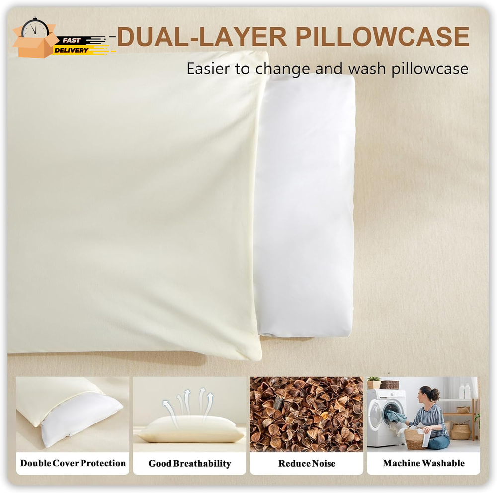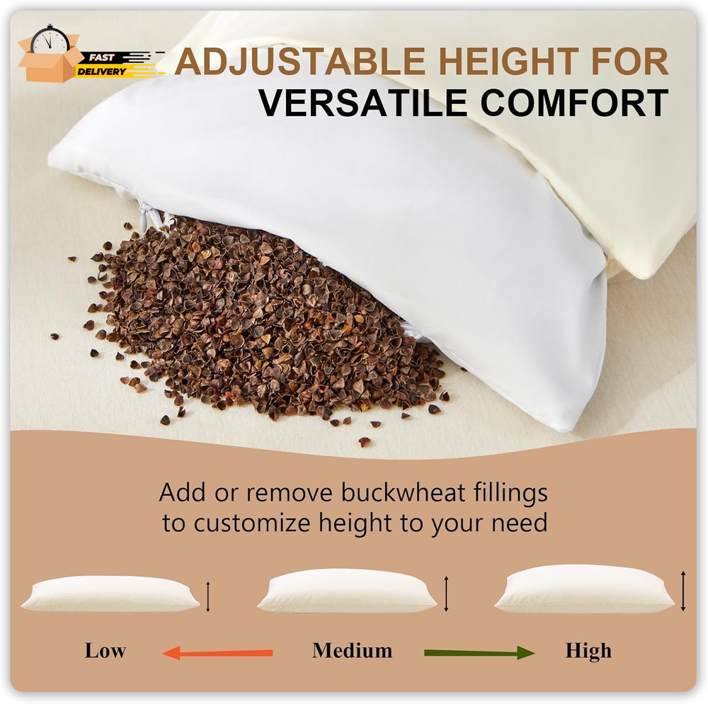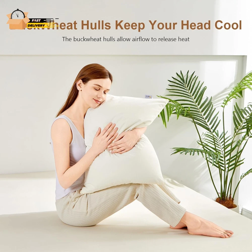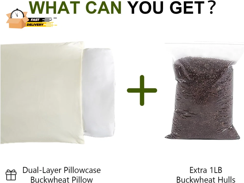 Organic Buckwheat Pillow for Sleeping with Dual-Layer Pillowcase and Extra Tart