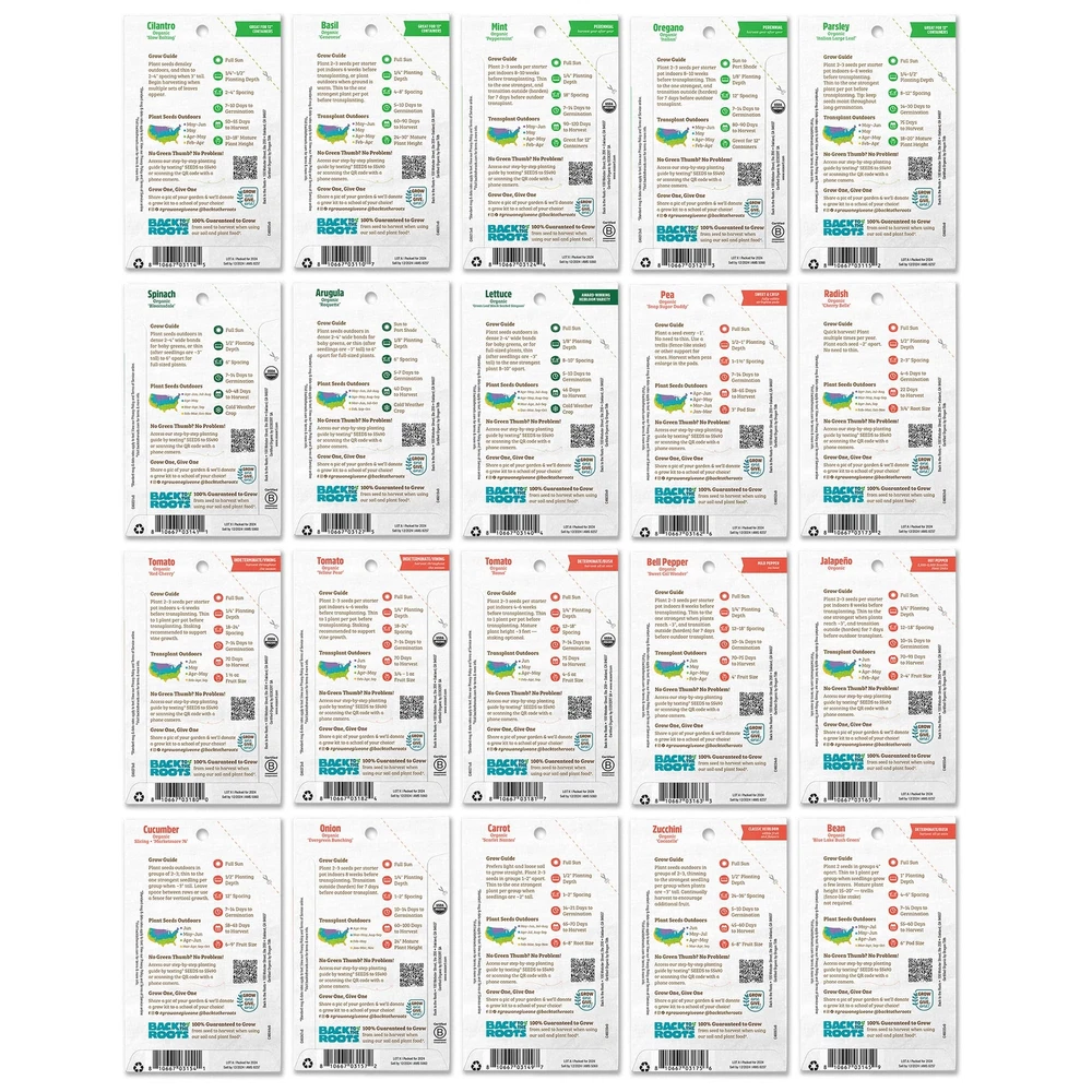 Ignite your gardening journey with the Organic Bundle - a curated collection of 20 non-GMO, organic herb and vegetable seeds, perfect for both novice indoor plant enthusiasts and seasoned outdoor gardeners. Cultivate a thriving garden with a diverse mix of USA-grown classics, ensuring a bountiful harvest this Spring and Summer. Share the joy of gardening by gifting a packet or to fellow plant enthusiasts, and join our #GrowOneGiveOne movement – post a photo on or with your packets and garden, tag @BacktotheRoots & #GrowOneGiveOne, and we'll contribute a bundle to the elementary school classroom of your choice. Embrace the future of sustainable, homegrown goodness and sow the seeds of a vibrant tomorrow. ORGANIC & NON-GMO: Elevate your culinary creations with Seeds Variety 20-Pack. certified organic and non-GMO, these seeds ensure pure, untainted flavors for your warm-weather herb garden. #GrowOneGif YEAR-ROUND GARDENING JOY: Elevate your gardening experience with our 20-pack kits. Tested for optimal germination, these specially selected herbs and veggies make indoor and outdoor gardening a year-round delight. DIVERSE HARVEST AWAITS: Tailored for beginners, our variety pack offers a mix of flavorful herbs, hearty veggies, and crisp greens. Unlock endless culinary possibilities with your own organic harvest. GARDENING MADE EASY: Our foolproof variety pack comes with step-by-step instructions, ensuring hassle-free gardening for beginners. Cultivate your green haven effortlessly and enjoy a bountiful harvest in no time. 100% GUARANTEED TO GROW: If you are not satisfied or have any issues, just shoot us a note and our dedicacted customer support team will make sure we get you growing or send you a /.