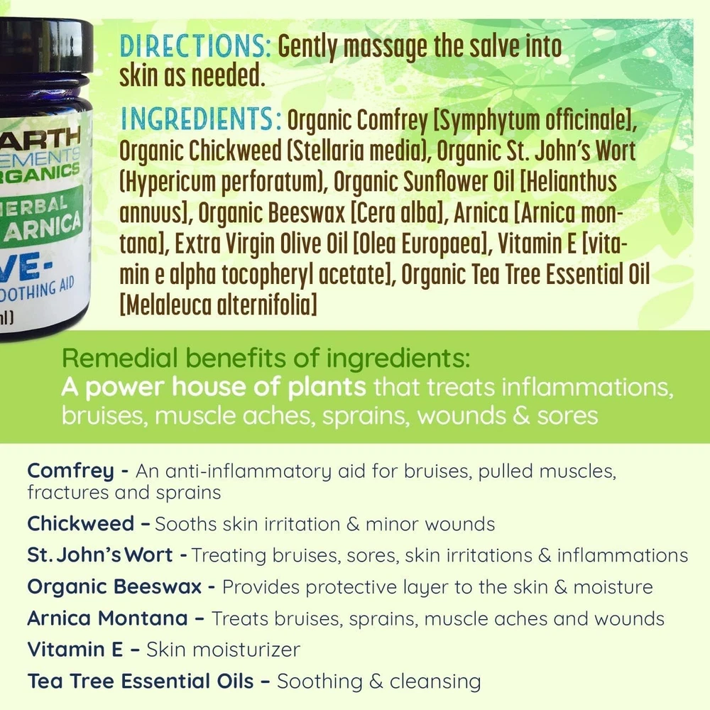 Organic Comfrey & Arnica Salve - Natural Relief for Muscle Pain & Skin Healing ‹ › ‹ › ‹ › ‹ › ‹ › ‹ › ‹ › ‹ › ‹ › ‹ › ‹ › Organic Comfrey & Arnica Salve Your Natural Relief for Muscle Pain & Skin Healing BACK IN STOCK IN MID-OCTOBER. Product Highlights: Crafted from organic certified ingredients, ensuring the utmost purity and quality. A potent blend of comfrey and arnica, renowned for their healing and pain-relieving properties. Gluten-free, cruelty-free, and chemical-free for peace of mind. Formulated in-house, in small batches to guarantee exceptional quality. Suitable for all skin types, making it a versatile addition to your skincare regime. Our Commitment: Utilizing the finest, responsibly sourced ingredients. Combining traditional herbal knowledge with modern technology. All packaging is environmentally friendly; reusable and recyclable. We prioritize your needs, listening carefully to ensure our products fulfill them. Crafted with Care: It all started with an insatiable curiosity for nature and its gifts, leading to an exploration of herbs and their potent applications. In 2011, the journey began with simple experiments, culminating in the creation of in 2014, dedicated to producing high-quality herbal oils, salves, and teas. Why Choose Our Organic Comfrey & Arnica Salve? Whether you are battling muscle pain, sprains, or minor skin irritations, this salve is your trusted ally on the path to relief. The combined powers of comfrey and arnica work harmoniously to soothe discomfort, promote healing, and rejuvenate your skin. Embrace a naturally effective solution that reflects a commitment to quality and care. Transform your self-care routine—experience the difference with our Organic Comfrey & Arnica Salve. Order now and take the first step toward holistic healing! Shipping Free & Fast Shipping - We offer free shipping to most of the USA with a normal delivery time of 3-7 days. However, due to the current situation, additional delivery time (up to 3 weeks) may be required for some items. Alternative Carriers - We may use alternative carriers (e.g. USPS, FedEx, UPS, etc.) to ensure your package arrives safely and on time. Due to the use of multiple carriers, we are unable to provide a tracking number automatically. Handling Time - Orders are processed and shipped within 1-2 business days of receiving cleared payment. Shipping Restrictions - Shipping to Alaska, Hawaii, Puerto Rico, Guam, and other US territories may incur shipping charges or delivery restrictions. Please contact us before ordering, or your order can be refunded/cancelled. State Restrictions - There may be restrictions based on your state of purchase. For example, certain items may not be shipped to California due to state regulations. Contact for Tracking Updates - If you require tracking updates or have any concerns about the delivery of your order, please feel free to contact us, and we will be happy to assist you. Return Please see our eBay Return Policy. Thank you. Payment We accept all major credit cards, PayPal, and Apple Pay for your convenience. Your payment information is secure and encrypted to ensure a safe and seamless transaction. Please complete your payment within 3 days of purchase to avoid any delays in shipping. Feedback Your feedback is extremely important to us. We strive to provide the best products and customer service possible. If you are satisfied with your purchase, please take a moment to leave us a positive review. If you have any concerns or issues with your order, please contact us before leaving negative feedback. We are committed to resolving any problems and ensuring your satisfaction. Contact Us If you have any questions or concerns, please feel free to reach out to our customer support team. You can contact us through the eBay messaging system. We are available Monday to Friday, 9:00 am to 5:00 pm EST, and we will do our best to respond to your inquiry within 24 hours. Thank you for supporting our small family business! UPC: Not Set Expiration Date: Not Set Unit Quantity: 1 Formulation: Salve Active Ingredients: Comfrey,Arnica Features: Organic,Gluten-Free,Cruelty-Free,Chemical-Free Scent: Not Set Main Purpose: Aches & Pains,Bruising,Muscle Therapy,Joint Pain,Minor Burns,Cuts,Scrapes,Wounds Administration: Topical When to Take: Not Set Ingredients: Arnica,Comfrey,Herbal Oils Type of Diet: Organic Body Area: Skin Department: Unisex Brand: Unbranded Type: Salve Dosage: Not Set MPN: Not Set Country/Region of Manufacture: Not Set Item Weight: 6.4 oz Volume: Not Set Number of Pills: Not Set Unit Type: oz
