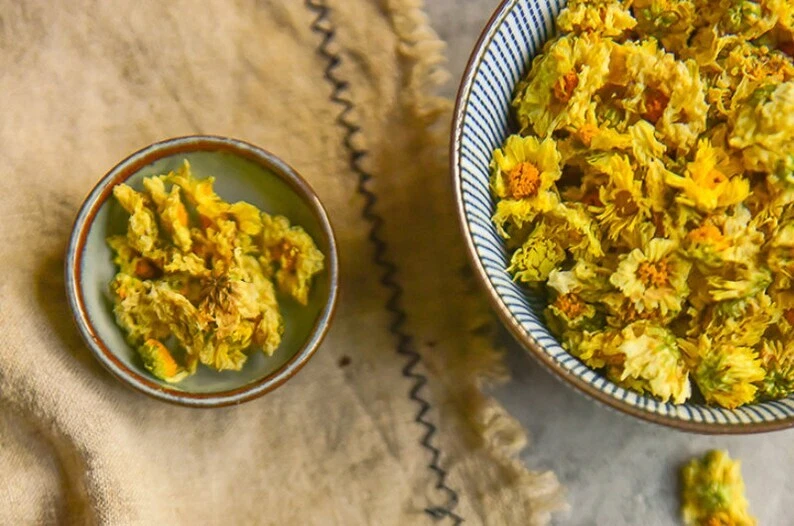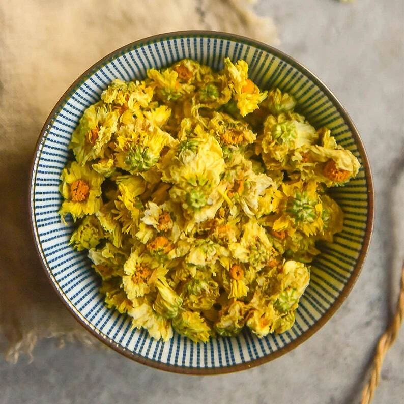Origin: China Package include: 100g / 250g / 500g The chrysanthemum buds also called as tai ju, come from young Hangzhou white chrysanthemum flowers, one of China’s four famous chrysanthemum types. These chrysanthemum buds herbal tea are selected from the first batch of the flower buds at the early of November in Tongxiang, Zhejiang Province. It is a first grade. Chrysanthemum buds tea have no caffeine and can be consumed any time of day without disrupting your sleep. The flower tea buds are stonger and richer in flavor than the fully-bloomed flowers themselves. Brewing Instruction: Porcelain gaiwan or glass tea cup is suggested for brewing the chrysanthemum buds herbal tea, 3-5g tea with wate about 200-300ml and the water temperature should be around 100℃, do not be too low. Stay for about 1-2 minutes, you can begin to drink the tea. Storage: Stored in a dry place and no direct sunshine.