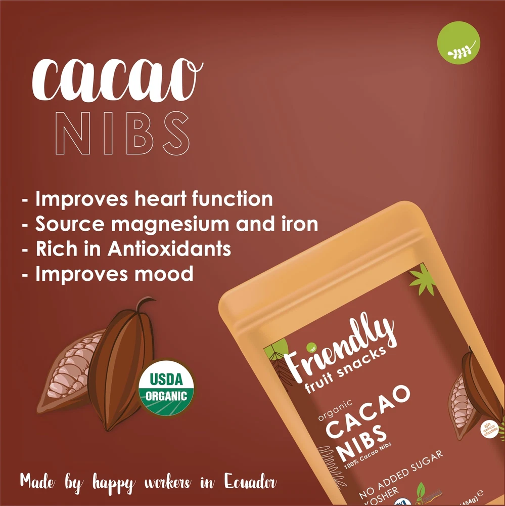 Ecuadorian Cacao Nibs - Nature's Energy Boost: Experience the natural energy boost that only premium organic cacao nibs from Ecuador can provide. Sourced from sustainable cacao farms nestled in the heart of Ecuador's rainforests, these nibs are packed with vital nutrients and a unique chocolatey crunch. If you are a chocolate lover but like to keep a healthy lifestyle, well you are in luck! Just add to smoothies, drinks, recipes, granola, etc., for a chocolatey taste and enjoy the nutrition that cacao gives to you. The best part is that we promise to keep every single one of our snacks delicious and 100% natural.