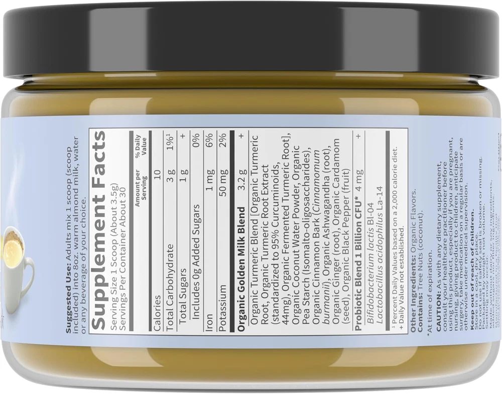 1. This golden milk powder is a game-changer! The blend of organic turmeric and ashwagandha makes it so soothing—perfect for winding down after a long day. It mixes easily, tastes delicious with warm milk, and I love that it’s vegan and non-GMO. After just a few servings, I noticed better relaxation and recovery. Definitely a must-try for anyone looking for a natural wellness boost!