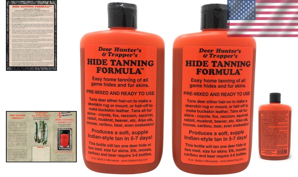 Organic Hide Tanning Solution - 2 Pack 8oz Bottles for Fast Results ‹ › ‹ › ‹ › ‹ › ‹ › ‹ › Organic Hide Tanning Solution - 2 Pack 8oz Bottles for Fast Results Product Highlights: 2 x 8 oz. Bottles - Perfect for your tanning needs. Legendary Quality: Trusted by thousands of hunters and trappers across the USA and Canada for decades. Made in the USA: Proudly produced and bottled for over 20 . Easy to Use: Each bottle comes with a complete set of instructions for hassle-free tanning. Benefits: Fast tanning results: Tan hides at home in less than a week! Cost-effective: Enjoy tanning without the traditional costs. Versatile: Ideal for tanning deer hides (hair-on for rugs or mounts and hair-off for buckskin) as well as all fur skins including muskrat, mink, beaver, fox, coyote, raccoon, squirrel, bear, elk, moose, and cowhide. Produces a soft, supple Indian-style tan in just 5-7 days. Packs the power: One 8 oz. bottle can tan one deer hide or two medium-sized fur skins. Extra bottles required for larger hides: Bear, elk, moose, and caribou require 3-6 bottles for optimal results. Why Choose Our Hide Tanning Solution? Transform your hunting trophies into keepsakes with our Organic Hide Tanning Solution, renowned as the finest tanning formula in the world. With decades of trust from thousands of hunters and trappers, you can confidently embark on your tanning journey knowing that quality is assured. You will be amazed at how simple and effective this solution is, turning your hides into beautiful, supple leather. Don't let your hard work go to waste; click "Add to Cart" now and get ready to tan like a pro! Shipping Free & Fast Shipping - We offer free shipping to most of the USA with a normal delivery time of 3-7 days. However, due to the current situation, additional delivery time (up to 3 weeks) may be required for some items. Alternative Carriers - We may use alternative carriers (e.g. USPS, FedEx, UPS, etc.) to ensure your package arrives safely and on time. Due to the use of multiple carriers, we are unable to provide a tracking number automatically. Handling Time - Orders are processed and shipped within 1-2 business days of receiving cleared payment. Shipping Restrictions - Shipping to Alaska, Hawaii, Puerto Rico, Guam, and other US territories may incur shipping charges or delivery restrictions. Please contact us before ordering, or your order can be refunded/cancelled. State Restrictions - There may be restrictions based on your state of purchase. For example, certain items may not be shipped to California due to state regulations. Contact for Tracking Updates - If you require tracking updates or have any concerns about the delivery of your order, please feel free to contact us, and we will be happy to assist you. Return 30-Day Hassle-Free Returns - We want you to be completely satisfied with your purchase. If you are not, you can return the item within 30 days of receiving it for a full refund or exchange. Easy Return Process - To start a return, simply contact us and we will provide you with a prepaid return shipping label and detailed instructions. Restocking Fee - There are no restocking fees for returns. However, the buyer is responsible for return shipping costs if the return is not due to a seller's error. Refund Processing Time - Refunds will be processed within 5 business days of receiving the returned item in its condition. Payment We accept all major credit cards, PayPal, and Apple Pay for your convenience. Your payment information is secure and encrypted to ensure a safe and seamless transaction. Please complete your payment within 3 days of purchase to avoid any delays in shipping. Feedback Your feedback is extremely important to us. We strive to provide the best products and customer service possible. If you are satisfied with your purchase, please take a moment to leave us a positive review. If you have any concerns or issues with your order, please contact us before leaving negative feedback. We are committed to resolving any problems and ensuring your satisfaction. Contact Us If you have any questions or concerns, please feel free to out to our customer support team. You can contact us through the eBay messaging system. We are available Monday to Friday, 9:00 am to 5:00 pm EST, and we will do our best to respond to your inquiry within 24 hours. Buy it now and enjoy a pleasant shopping experience! Expiration Date: Hide Tanning Formula Unit Quantity: 2 Formulation: Liquid Features: Organic,Easy to Use,Made in the USA,Legendary Quality Body Area: Full Body Type: For Indoor Use Color: Multicolor Sun Protection Factor (SPF): SPF 0 Volume: 8 fl oz Skin Type: All