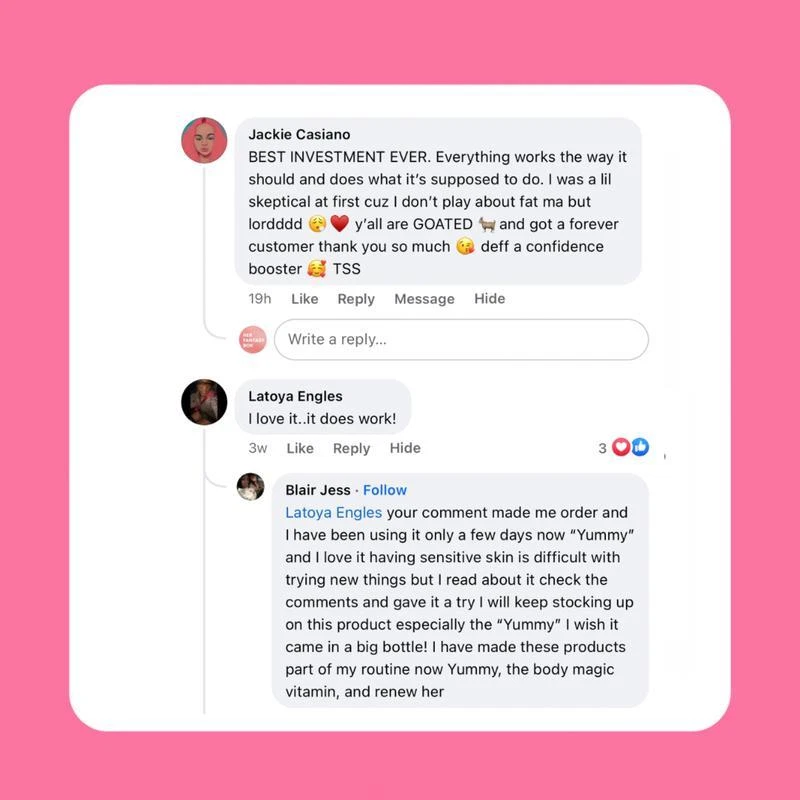 Experience the ultimate hygiene and body care with Her Fantasy Box Yummy Shower Gel! If you love to smell juicy and fruity this is for you. This hydrating body wash is crafted with skin-loving, plant-based ingredients that cleanse, moisturize, and leave your skin smelling irresistible. Say goodbye to dryness and hello to soft, supple skin with every use. Perfect for all skin types, this luxurious shower gel not only refreshes but also helps you stay fresh all day long. Indulge in a spa-like experience every time you shower! On Nov 10, 2024 at 17:44:17 PST, seller added the following information:
