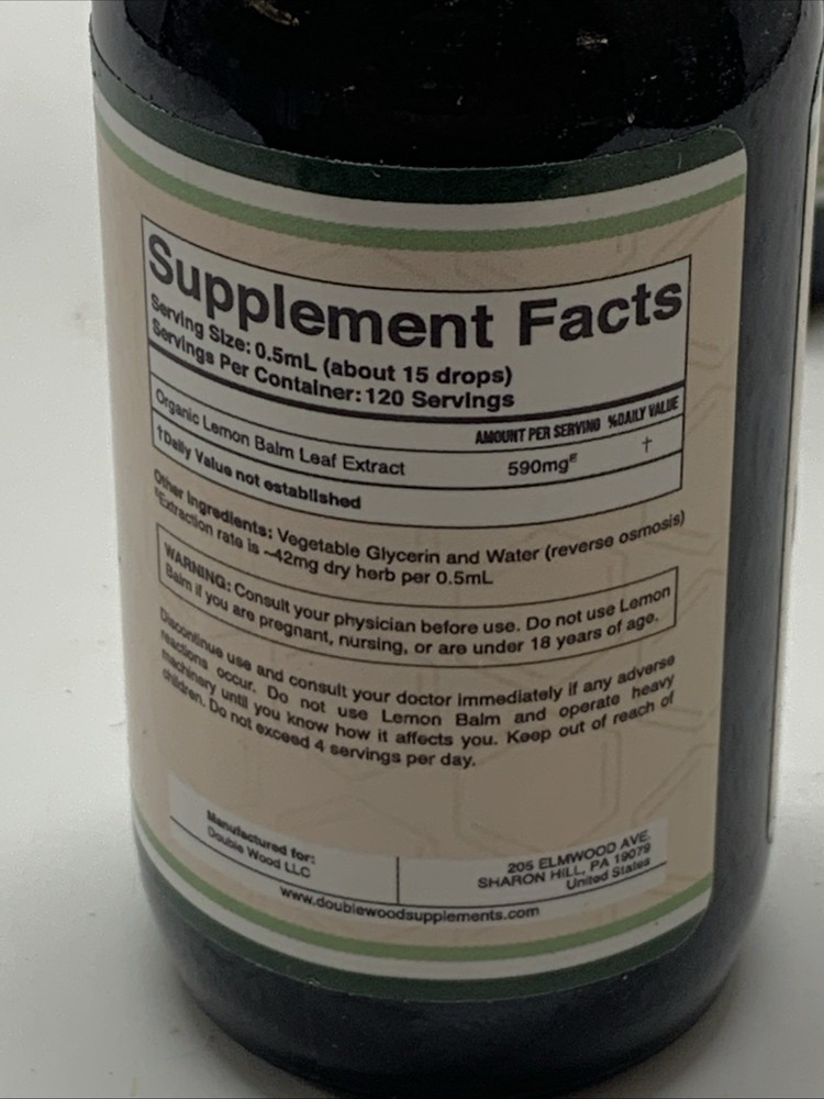 Type of Diet:Does not applyIngredients:Does not applyScent:Does not applyFormulation:Does not applyWhen to Take:Does not applyMPN:Does not applyCalifornia Prop 65 Warning:Does not applyType:Does not applyMain Purpose:Does not applyCountry/Region of Manufacture:Does not applyBody Area:Does not applygtin13:NAExpiration Date:Does not applyActive Ingredients:Lemon BalmDepartment:Does not applyItem Weight:Does not applyProduct Dimensions:1.5 x 1.5 x 5 inches; 4.94 ouncesAdministration:Does not applyDosage:Does not applyVolume:Does not applyBrand:Double Wood SupplementsFeatures:Does not applyNumber of Pills:Does not applyUPC:NA