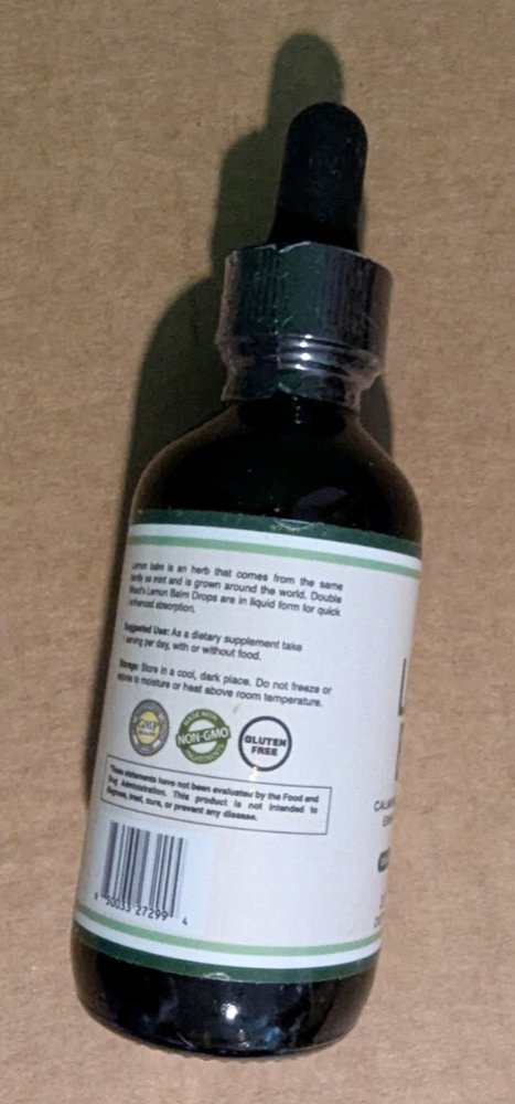 Type of Diet: Does not apply Brand: Double Wood Supplements Scent: Does not apply Volume: Does not apply MPN: Does not apply Country/Region of Manufacture: Does not apply Ingredients: Does not apply When to Take: Does not apply UPC: DO NOT APPLY Features: Does not apply, Organic Dosage: Does not apply Department: Does not apply Product Dimensions: 1.5 x 1.5 x 5 inches; 4.94 ounces Active Ingredients: Lemon Balm Body Area: Does not apply Type: Extract Expiration Date: JUNE 2026 Main Purpose: Does not apply Administration: Does not apply Item Weight: Does not apply Number of Pills: Does not apply Formulation: Does not apply, Drops California Prop 65 Warning: Does not apply gtin13: DO NOT APPLY