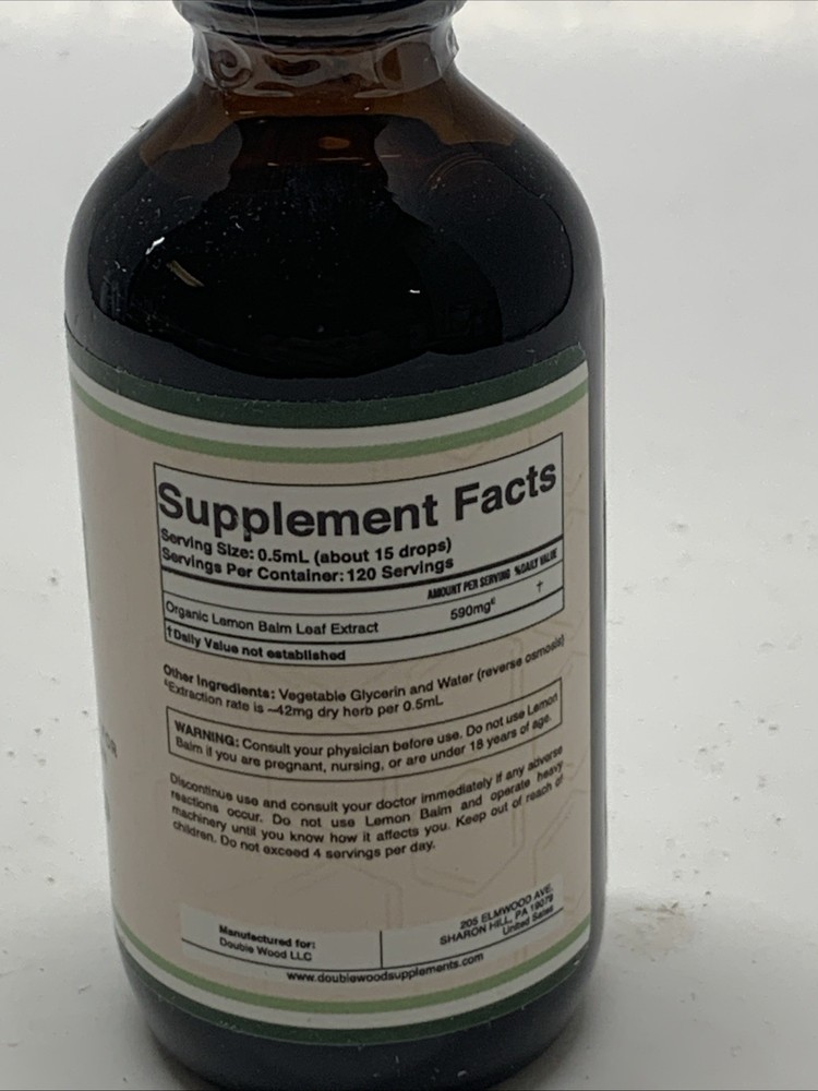 Ingredients:Does not applyScent:Does not applyBody Area:Does not applyAdministration:Does not applyProduct Dimensions:1.5 x 1.5 x 5 inches; 4.94 ouncesFeatures:Does not applyDepartment:Does not applyUPC:NAMPN:Does not applyCalifornia Prop 65 Warning:Does not applyActive Ingredients:Lemon Balmgtin13:NAMain Purpose:Does not applyExpiration Date:Does not applyType:Does not applyCountry/Region of Manufacture:Does not applyType of Diet:Does not applyBrand:Double Wood SupplementsDosage:Does not applyFormulation:Does not applyWhen to Take:Does not applyVolume:Does not applyNumber of Pills:Does not applyItem Weight:Does not apply