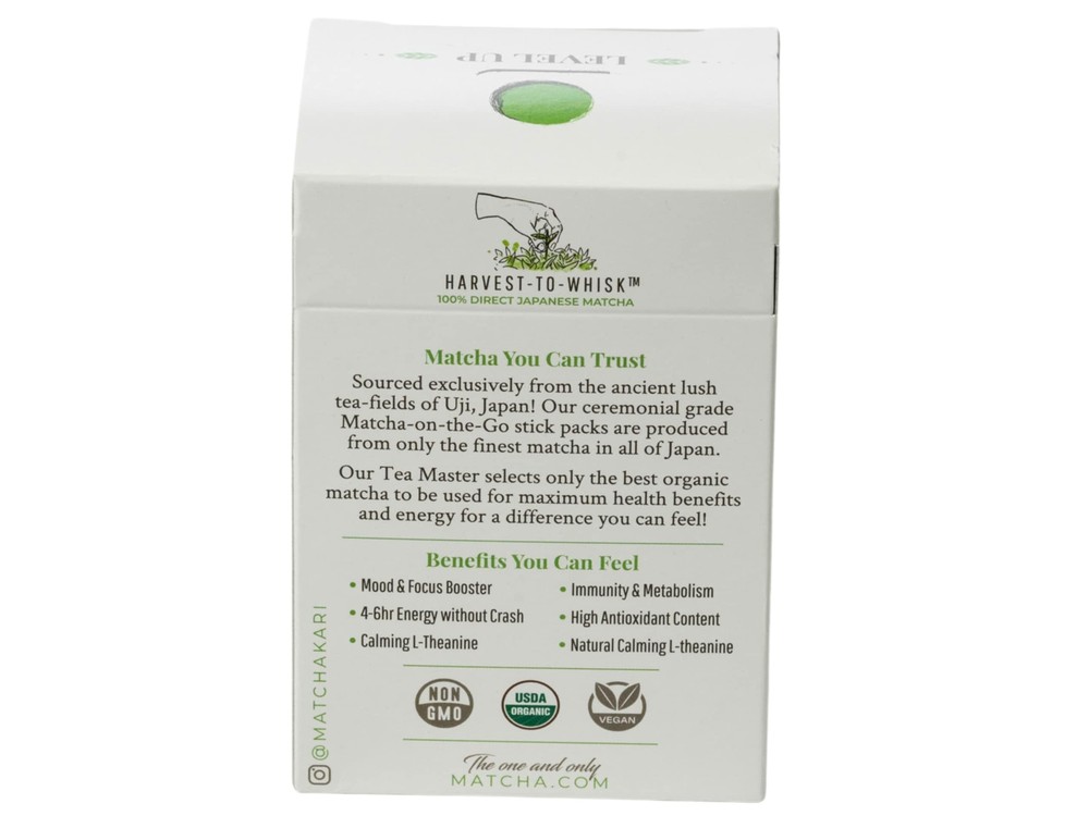 Single Serving Sticks - Easy for on the go travel. Each stick is one serving and can be mixed easily into a drink, hot or cold. 24 sticks are included. Ceremonial Organic - Our Matcha is organic and its high quality has a smooth flavor that is enjoyed by many. It is 100% USDA organic, all-natural, and has no additives making it naturally gluten-free and vegan. Health Benefits - Our matcha is a great source of minerals, polyphenols, amino acids and antioxidants. This helps boost alertness, and contains mood-boosting and calming ingredients. Authentically Japanese - These matcha tea leaves are grown in our exclusive Matcha tea-farm in Uji, Japan. Our "Harvest To Whisk" program ensures freshness from our partners to you. On the go use - Easy to throw in a bag, you can take our single serving sticks anywhere. Just tear off the top and mix into your drink to enjoy our delicious matcha taste wherever you find convenient.