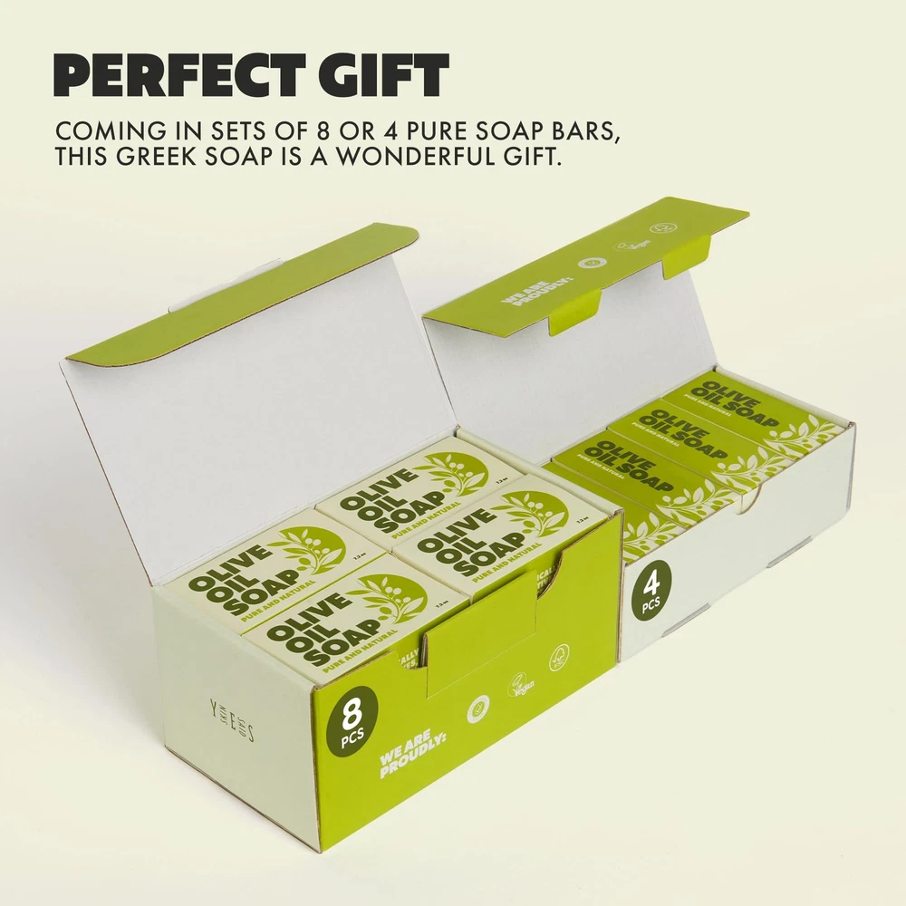 Olive Oil Soap Bars - Set of 8 - Organic Bar Soap - Moisturizing, Gentle on Skin, Rich in Antioxidants - Ideal for Sensitive Skin, Kids, Men, and Women - Perfect for Everyday Use LUXURY SIZE - These pure olive oil soap bars are twice the size of typical handmade soaps. Lasting longer, these natural soap bars offer better value over time. Use your luxury soaps for hands, face, & body! GOOD FOR SENSITIVE SKIN - Incredibly hydrating, olive oil bar soaps moisturize the skin without stripping natural oils or clogging the pores. Olive soap bars are suitable for any skin type, including those with acne-prone skin, eczema, or psoriasis. NATURAL SCENT - Made in Greece, this unscented organic bar soap doesn’t contain artificial fragrances. Its aroma is the natural smell of olive oil used in high concentrations in the Greek olive oil soap base. 4 INGREDIENTS - No SLS or harsh chemicals in this organic olive oil soap from Greece! Just 4 ingredients make for a pure, clean composition. Non-GMO, not tried on animals, & vegan, it's a natural bar soap that's also nature-friendly. PERFECT GIFT - Coming in sets of 4 or 8 pure soap bars, this Greek soap is a wonderful gift. Olive oil is loaded with antioxidants, such as vitamins A & E, which protect the skin & make it a valuable gift for anyone! Introducing Olive Oil Soap – luxury-sized bars crafted for lasting value & superior performance. Each bar is meticulously designed to be twice the size of typical soap bars, offering an extended lifespan. The firm texture outlasts olive oil soap liquids & even softer bars. This olive oil hand soap is incredibly hydrating, moisturizing the skin without stripping its natural oils or clogging pores. It is natural & gentle, making it suitable for all skin types, including people with acne-prone skin, psoriasis, or eczema. Experience the feeling of soft, smooth, & rejuvenated skin! Proudly made in Greece, this unscented traditional olive oil soap contains no artificial fragrances. The aroma you experience is the natural scent of high-concentration olive oil in our authentic Greek olive soap. Also known as jabón de aceite de oliva, this olive oil castile soap offers a natural cleansing experience with zero synthetic additives. With just four carefully selected ingredients, our natural olive oil soap boasts a pure, clean composition without SLS or harsh chemicals. It is non-GMO, not tried on animals, and completely vegan, ensuring that no animals are harmed in its production. It is as kind to the environment as it is to your skin, making it a responsible choice for conscientious consumers. Available in beautifully packaged sets of 4 or 8 pure soap bars, this Greek bar soap makes a wonderful gift for any occasion. Olive oil is loaded with antioxidants, such as vitamins A and E, which protect and nourish the skin, providing essential nutrients that enhance your natural glow. Its beneficial properties make it a valuable gift for anyone looking to indulge in a soothing olive oil skin care experience. Choose Olive Oil Soap for a luxurious and natural skincare experience. Your skin will say yes! Shipping We offer FREE shipping on all orders! We ship within Three business days of payment, usually sooner. We use a selection of shipping services such as UPS, FedEx, USPS etc. We only ship to the lower 48 states, no APO/FPO addresses or PO Boxes allowed. Local pickups and combined shipping options are not provided at this time. Return You can return a product for up to 30 days from the date you purchased it. Any product you return must be in the same condition you received it and in the original packaging. Please keep the receipt. Payment We accept payment by any of the following methods: PayPal Please pay as soon as possible after winning an auction, as that will allow us to post your item to you sooner! Feedback Customer satisfaction is very important to us. If you have any problem with your order, please contact us and we will do our best to make you satisfied. Contact Us If you have any queries, please contact us via ebay. We usually respond within 24 hours on weekdays. Please visit our eBay store to check out other items for sale! Thank you for shopping at our store.