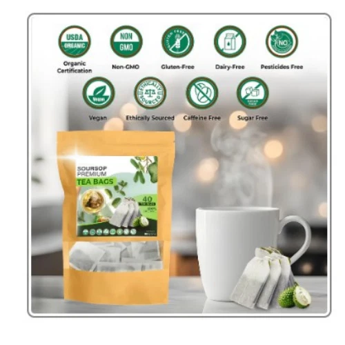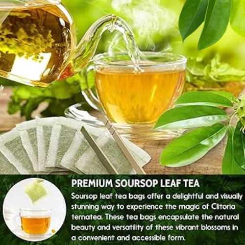 Organic Soursop Tea Bags - Herbal Guanabana Graviola Annona Muricata Ceylon | 2 FREE Tea Bags with Every Order( Free Shipping) Description: Enjoy the natural benefits of Organic Soursop Tea Bags, made from the finest Guanabana (Graviola) leaves, also known as Annona Muricata. This herbal tea is packed with antioxidants and nutrients to support your well-being. Product Highlights : Organic Soursop Leaves: Our tea is made from 100% organic soursop leaves, ensuring the highest quality and purity. Guanabana / Graviola Benefits: Known for its health-boosting properties, soursop has been used traditionally for its immune-boosting, anti-inflammatory, and antioxidant qualities. Premium Herbal Tea: Naturally caffeine-free, this herbal tea is perfect for relaxing at any time of day. 2 FREE Tea Bags: For every order, receive two additional tea bags for FREE – a perfect way to experience even more of this rejuvenating tea. Key Features: 100% Organic Soursop (Guanabana/Graviola) No artificial additives or preservatives Promotes relaxation and wellness Rich in antioxidants and vitamins Great for tea lovers looking for a unique, soothing beverage How to Use: Place one tea bag in a cup. Pour hot water over the tea bag. Let steep for 5-10 minutes, depending on your preferred strength. Enjoy your delicious and healthful tea. Why Choose Our Organic Soursop Tea? Sustainable & Eco-Friendly: We source our soursop leaves responsibly, ensuring an environmentally friendly product. Perfect for All Ages: Safe for adults and children alike, making it a great addition to any family's wellness routine. Free Shipping on Bulk Orders: Save more with multiple orders and enjoy the convenience of doorstep delivery. Indulge in the natural goodness of Guanabana Graviola and experience the health benefits of Annona Muricata. Order now and get two free tea bags with every purchase!