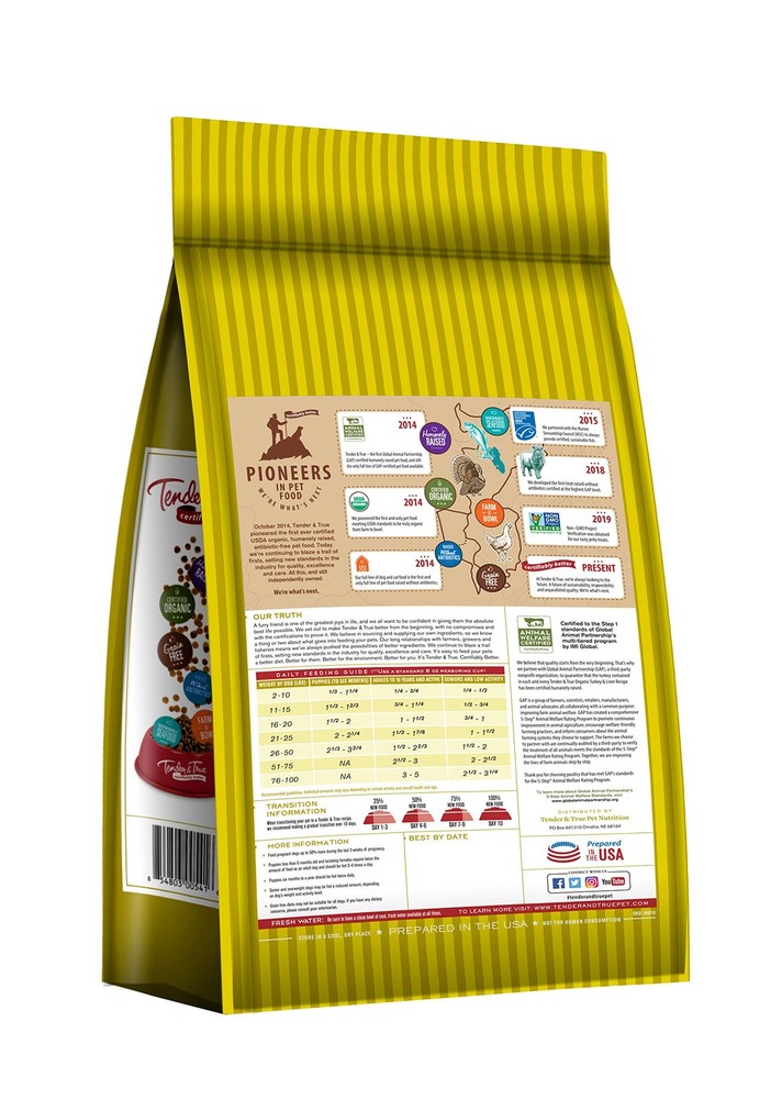 USDA Organic Certified Turkey 4 lb bag #1 ingredient is cage free organic turkey Grain-free Recipe No corn, wheat or soy A balanced formula for all life stages