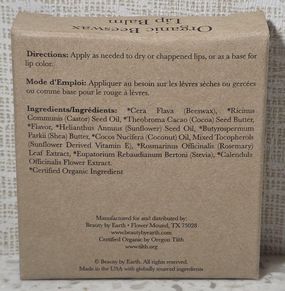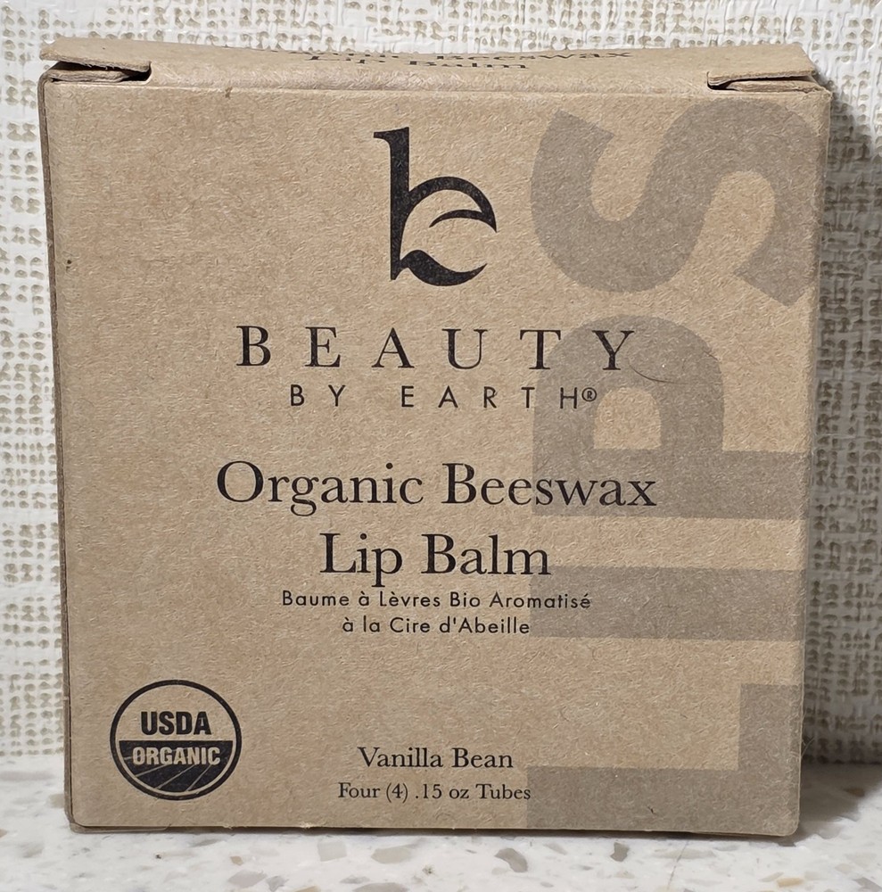 Beauty By Earth Organic Beeswax Lip Balm Vanilla Bean Four (4) .15 oz Tubes Exp. Date: 02/2026 NEW & sealed.