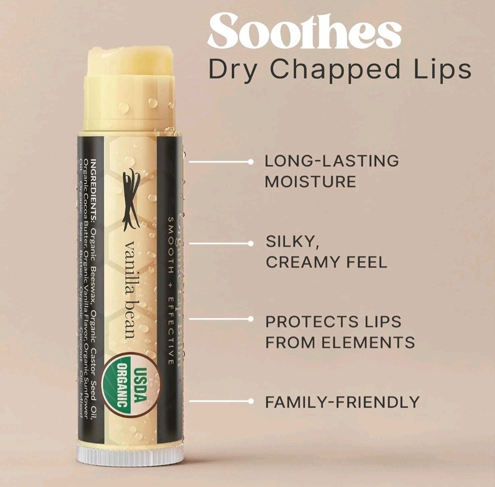 Organic Vanilla Bean Beeswax Lip Balm 4-Pack Fresh Until 2026 by Beauty By Earth