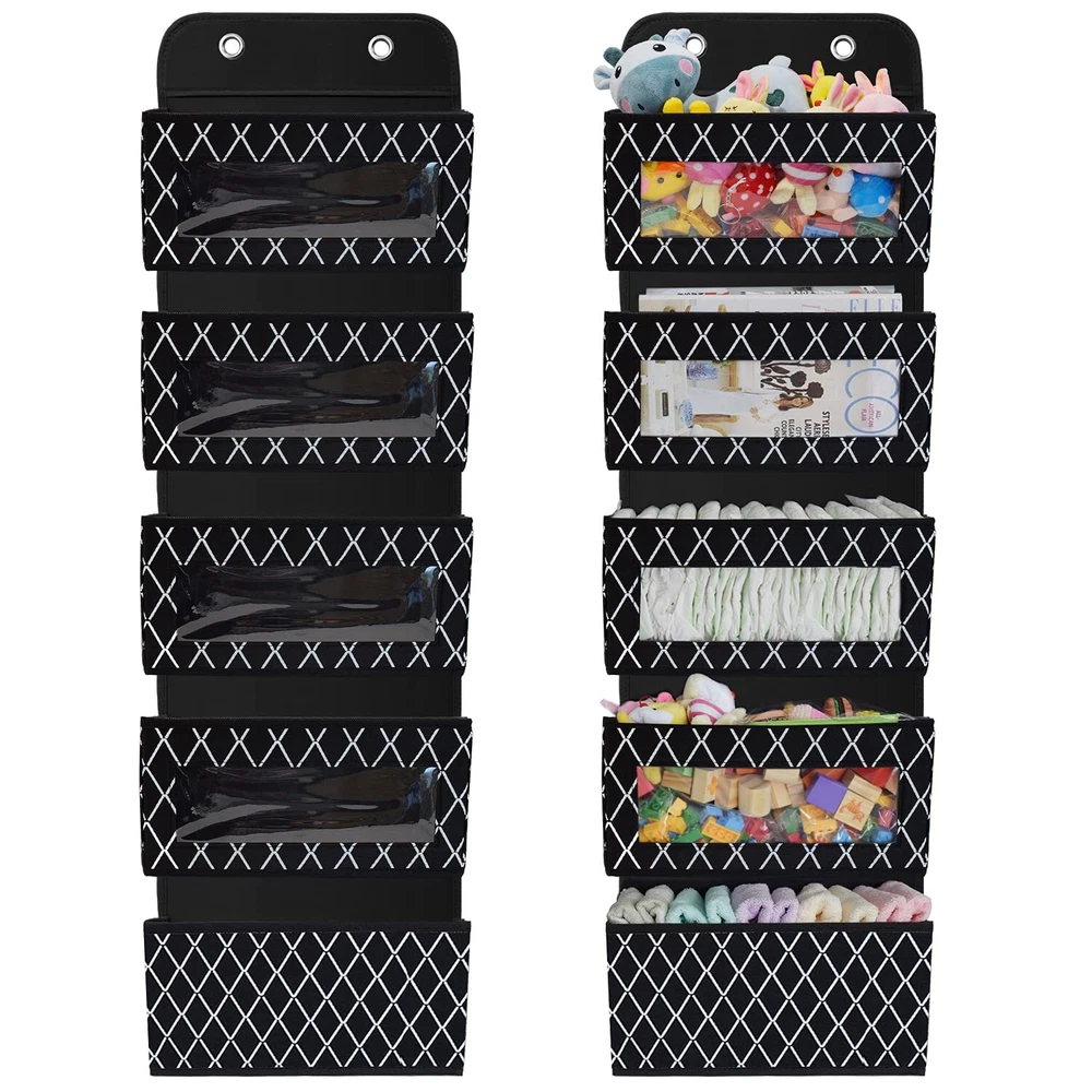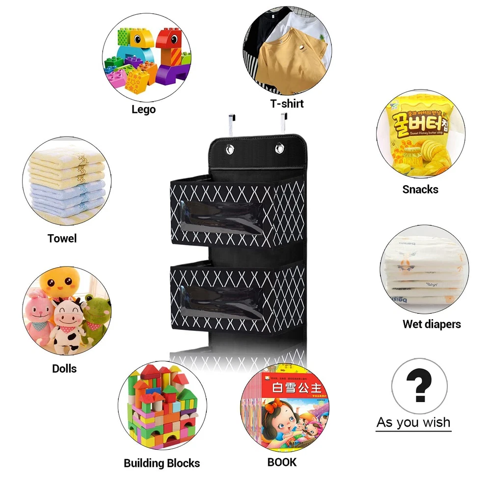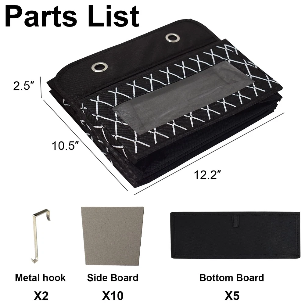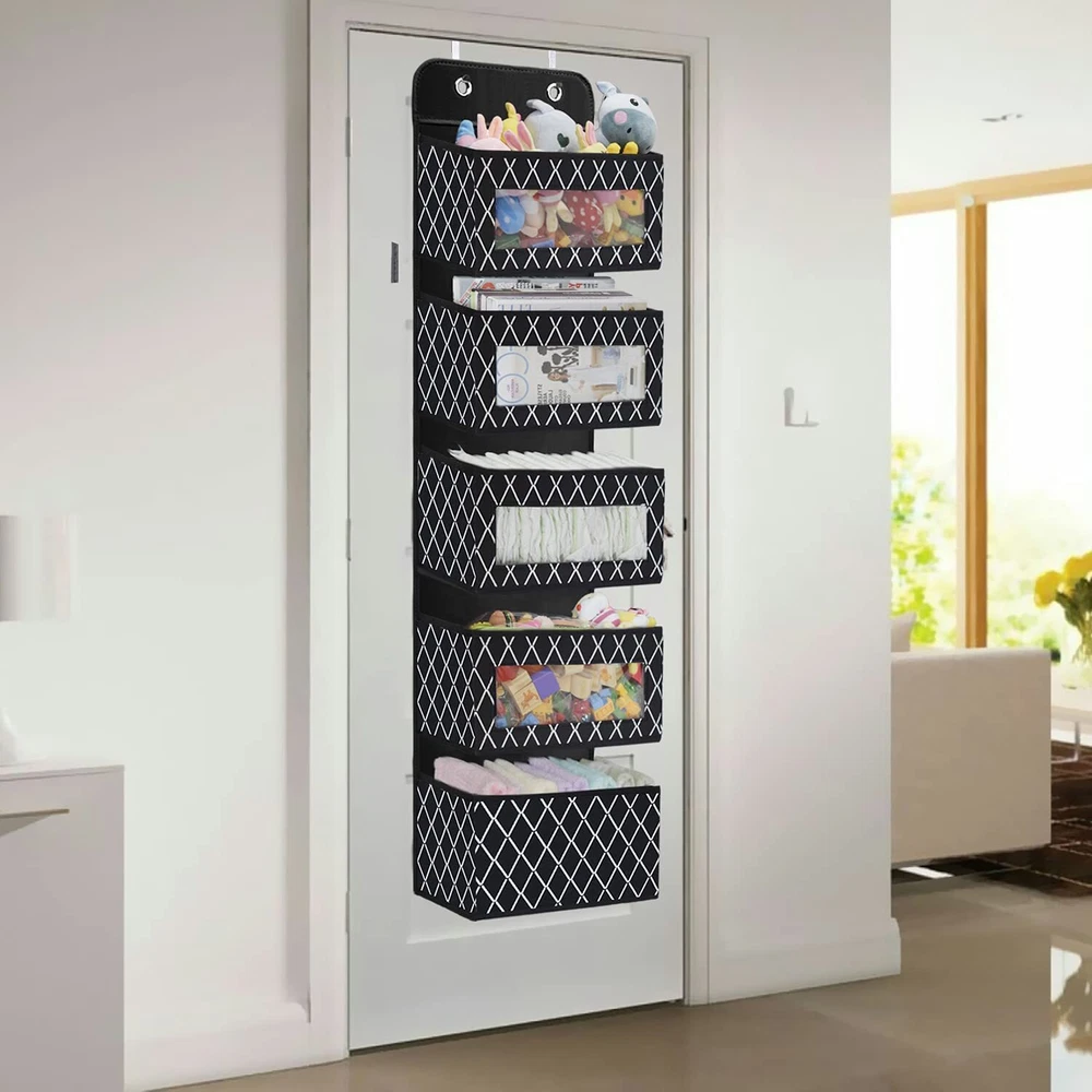 Are there many small accessories in the bedroom/bathroom/office/closet nowhere to be placed? Often can't find where they are? This over the door hanging organizer with 5 large pockets can help you keep your house tidy.Perfect for home storage and organize.large capacity and clear window-keep everything organized,easy to install,fit any place. Total measures: 49.6x12.2x5 inches(126x31x12.7cm). Each pocket measures:12.2x5.7x6.1 inches(31*14.5*15.5 cm). Material:Sturdy non-woven fabric with PVC clear window. 2 Metal hooks. Clear Window Design:It’s easy and convenient for you to find small items quickly what you need. 2mm cardborad:The bottom and the both sides of each pocket include sturdy cardboard keep the shape very well. Thicken back cardborad:each storage made of thick back cardborad.Maintain the stability of the product and will not deform during use it. 【Large Capacity】: The overall size of this VERONLY over the door hanging organizer is 12.2”(width)x5”(depth)x49.6”(height). It with 5 large pockets, each pocket measures 12.2x5x6.1inch, you can use it behind/back of the door to hold baby diapers, kids toys, etc. 【Perfect Visibility】:The clear PVC window in fronts of these over the door pantry organizers makes it easy for you to see what's inside of the pocket. 【Sturdy than Normal】:The bottom and each sides of this over the door pocket organizer adopt 2mm thick hard cardboard, outside covered with premium quality non-woven fabric, which is breathable, strong and durable with long life-span. 【Multi-purpose】:The over the door storage organizer can be widely used in your nursery, pantry, bathroom, bedroom, hang on the closet or cabinet door, or mounted on the wall to store different kinds of stuffs, such as baby diapers, bottles, kids toys, make-up cosmetics, food, snacks, tissues, toilet paper, hair dryer, etc. 【Easy to Install】: This over the door closet organizer will come with 2 thicken and widen metal hooks, 10 side boards, 5 bottom plates, and the body organizer in the package, it suitable for most of doors within 1.57” thickness, you can easily install it by yourself, no hardware needed.