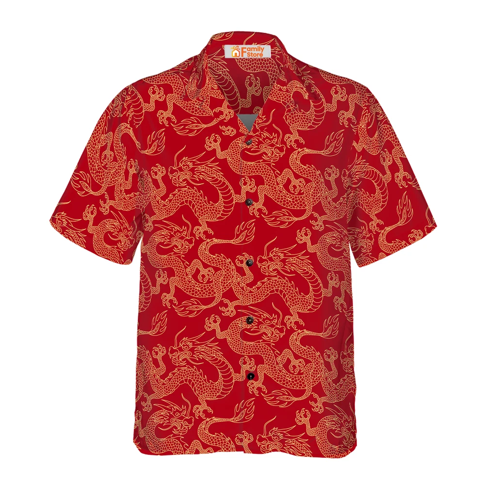 Oriental Dragon Red Hawaiian Shirt For Men US Size Summer Style NEW