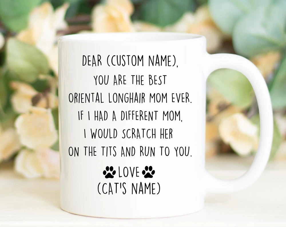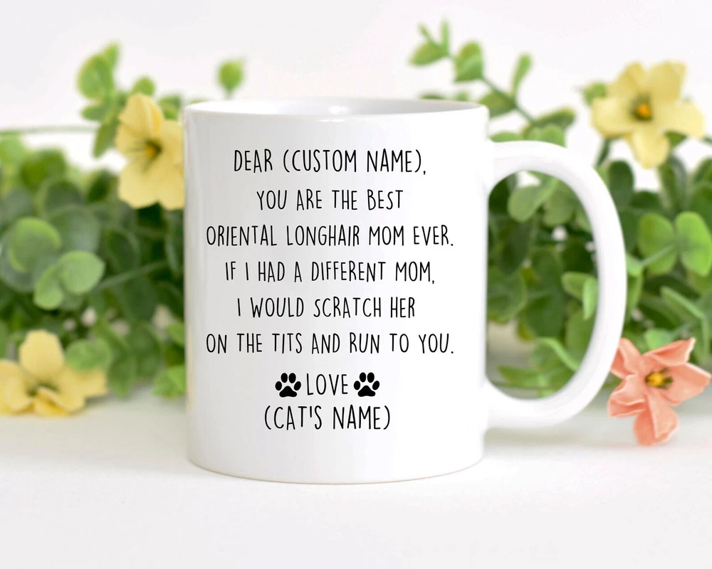Oriental Longhair Mom Birthday Gift Oriental Longhair Mom Christmas Gift British Angora Mom Valentine Oriental Longhair Mom Appreciation Product Details.. This high quality 11oz. ceramic white mug has a premium hard coat that provides crisp and vibrant color reproduction sure to last for years. Perfect for all hot & cold beverages. The highest quality printing possible is used. It will never fade no matter how many times you wash it. Material: 100% Ceramic. Print both sides. Dishwasher and Microwave Safe. High Gloss + Premium White Finish. Printed in the U.S.A. Personalized & Custom. We support personalized and custom mug to add custom, when placing an order, you can add notes to the "order note" in shipping address section. Also you can contact us directly via message. Shipping Info. Ready to ship in 1 to 2 business days, All products are made-to-order and proudly printed in the United States. Shipped by USPS and DHL, You will receive your order in 5-7 days. Replace & Refund. All products are defective during shipping broken, chipped will be replaced free of charge. You are not satisfied with the product, we will refund 100% money to you. If any other issues arise, please do not hesitate to message, we would be more than happy to assist you.