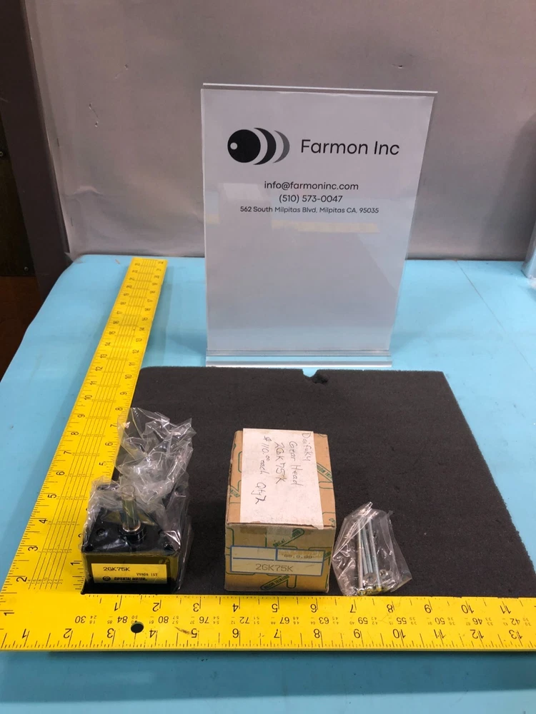 *Please contact us for same-day order processing* Oriental Motor 2GK75K Motor Gear Head This product is securely enclosed in its packaging and sold as new. The outer packaging may have been opened for inspection purposes and to take photos of the contents. For more details, please refer to the attached pictures. Price is for 1 item. We have provided pictures and a detailed description of each item, including its condition. If you have any questions or need more information, please contact us, and we will respond promptly. Please note that we are not selling any additional accessories with the item, such as cables, manuals, or software unless they are explicitly mentioned in the description and shown in the pictures. We cannot test the equipment, and it is being sold "As is and Where is" without any warranty, expressed or implied, regardless of its condition. We encourage you to inspect the products before making a purchase. All sales are final, and no returns or exchanges are permitted. Please review our policies before making a purchase. Buyer is responsible for all shipping and handling costs, including any applicable insurance, taxes, VAT, tariffs, or duties. The buyer is required to sign the shipping confirmation upon delivery of the item, as needed. International buyers: Some products are subject to U.S. export laws and cannot be sold to countries in Group E. We may need up to 30 days to determine the export classification (ECCN) and, if required, an additional 30-90 days to obtain an export license. To comply with regulations, we need a written statement with the End User, End Use, and agreement to follow the Export Administration Regulations (EAR). You will receive an email with required documents, and your order cannot be completed until all information is provided. After we receive your payment, please allow us a period of 3 business days to process and ship your order. We welcome all buyers to inspect the equipment before making a purchase. For additional information, please email or contact us. Farmon Inc. 562 South Milpitas Blvd. Milpitas, CA 95035 Our operating hours are 9 am to 4 pm (PST/GMT-8), Monday through Friday. Appointments can be made for Saturday and Sunday. We would like to acquire any surplus or unnecessary inventory you may have. Feel free to get in touch with us to have your inventory assessed and taken off your hands. We offer a wide range of semiconductor components and equipment, including RF generators, chillers, turbo pumps, cryo pumps, MFCs, vacuum pumps and controllers, step motors, drivers, and more.