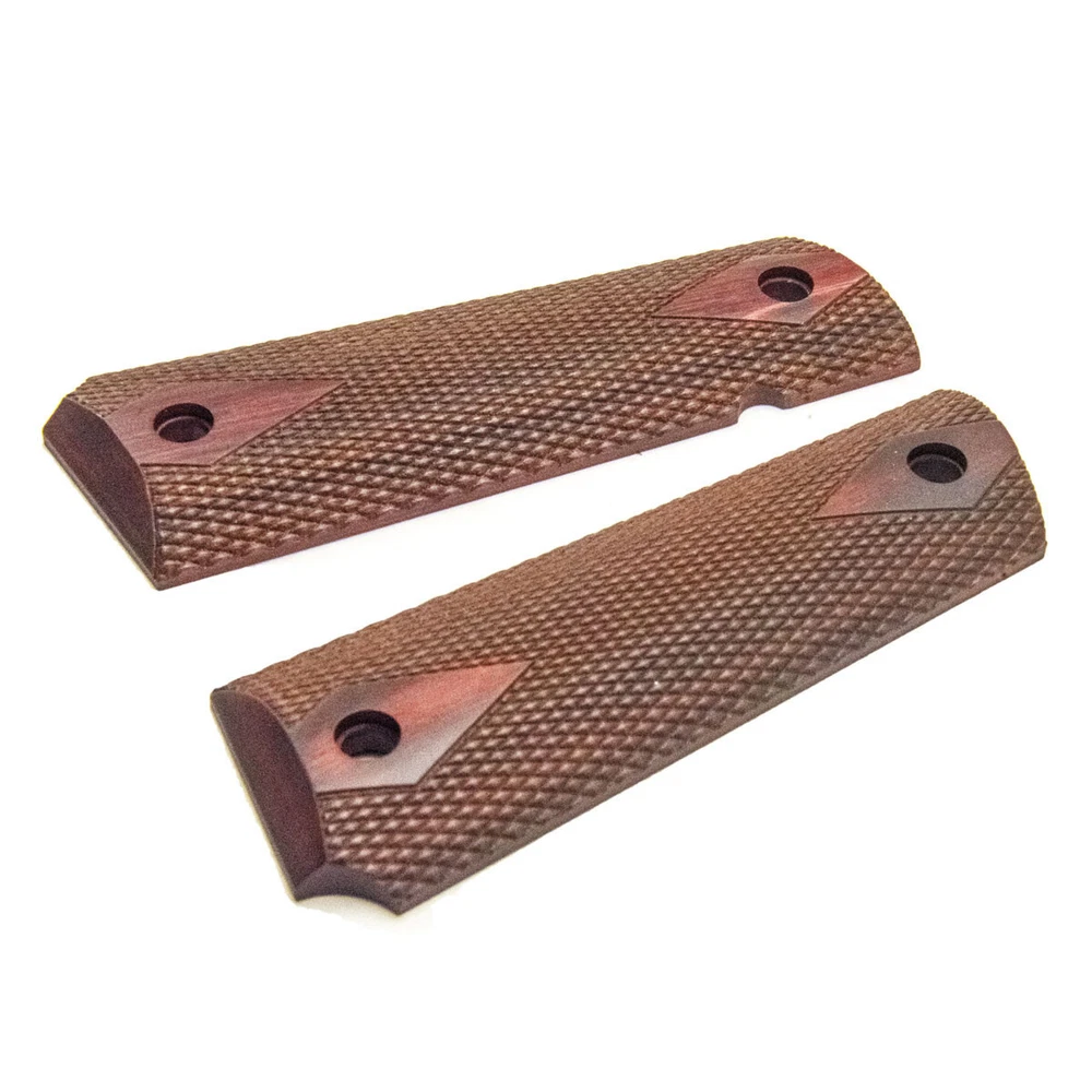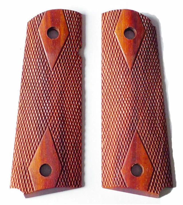 Original 1911 COLT Government Ambi Cut, Rosewood Double Diamond Pistol Grips These are the Original COLT manufactured Grips, came out of 1911 45ACP and 38 Supers. We customize guns and we change the grips to GOLD grip, so we liquidate the Original ones. Please bear in mind that these are original Rosewood, meaning the hue of the color might vary from pictures and from other grips, no two is alike. We will ship this item using USPS first class mail for FREE, we ship immediately in the same day of your payment or the next business day, tracking number will be provided, please allow up to 5 business days for delivery. We guarantee your satisfaction or your money back no questioned asked. Email me if you have a question. Thank you for your business.